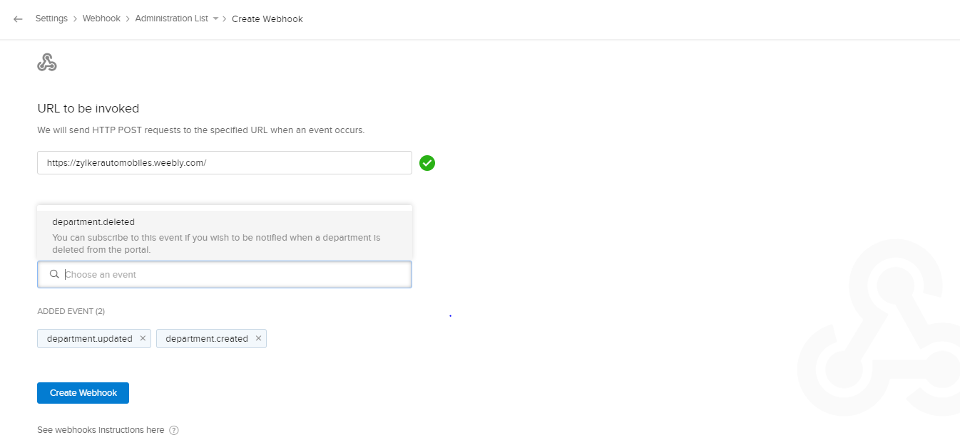 - 最後に、Webhook を作成 をクリックすると、Webhook が作成されます。