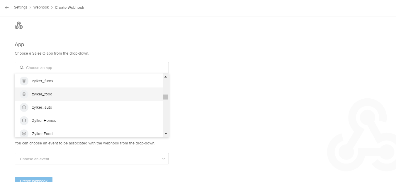 SalesIQ ダッシュボード内で、設定 > Developers > Webhook に移動します。