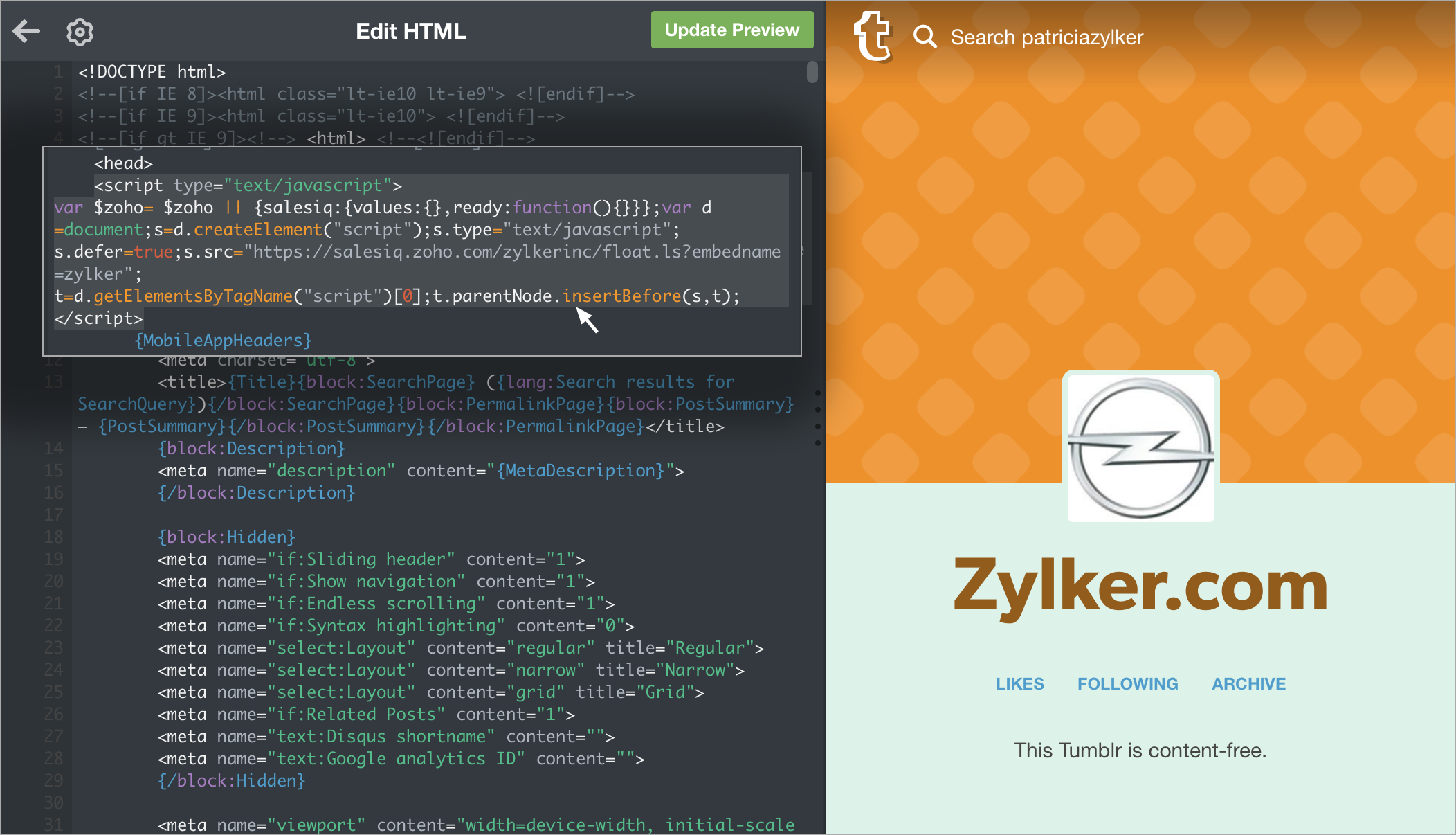 TumblrとZoho SalesIQの連携(チャットと訪問者追跡の機能の追加)