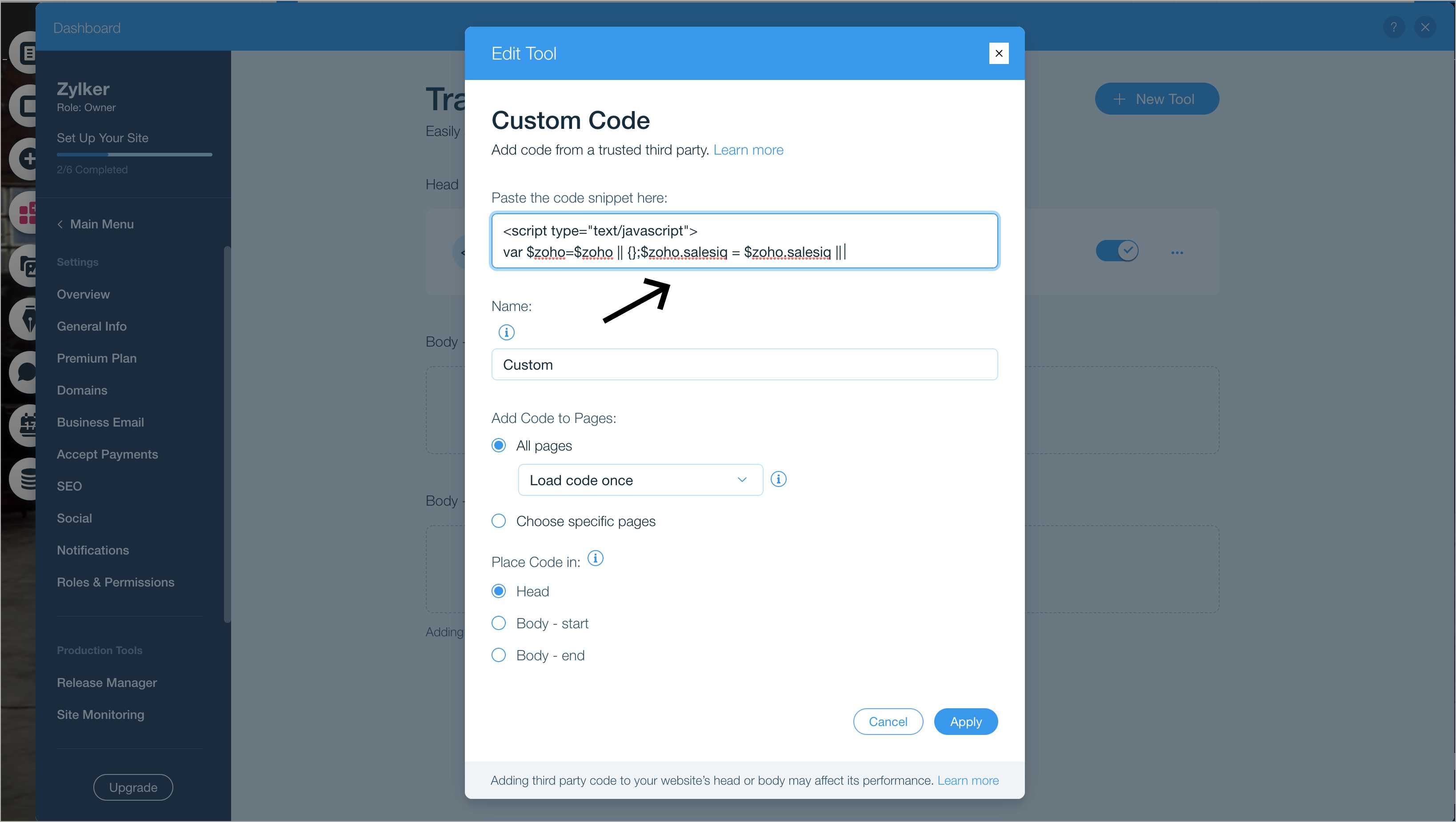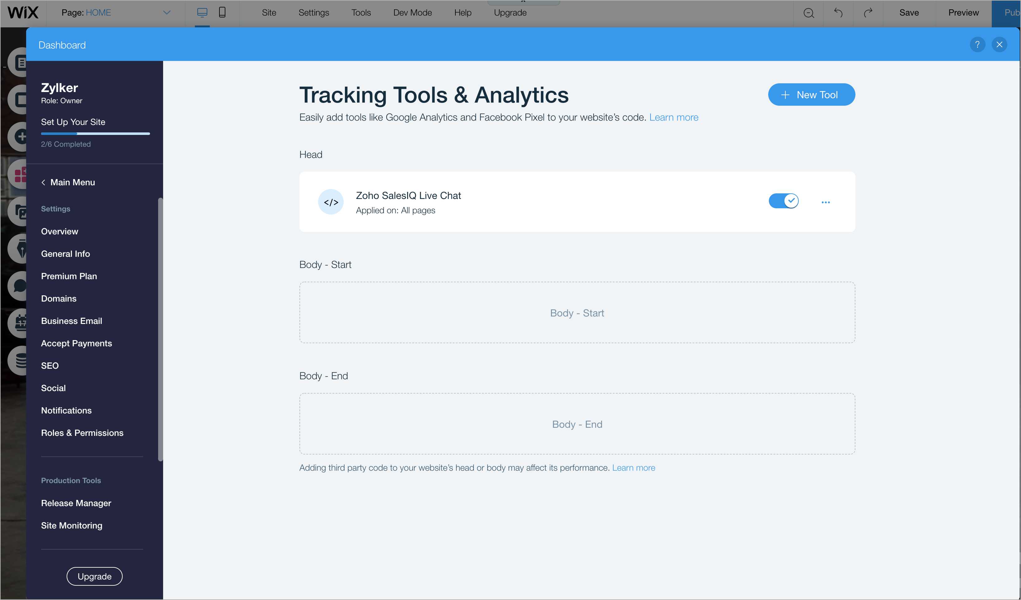 SalesIQとWixの連携(チャットと訪問者追跡の機能の追加)