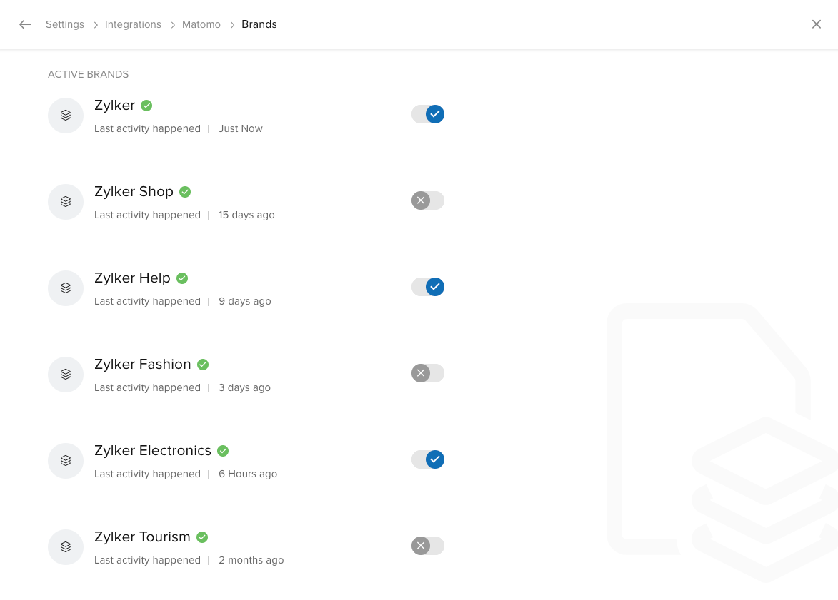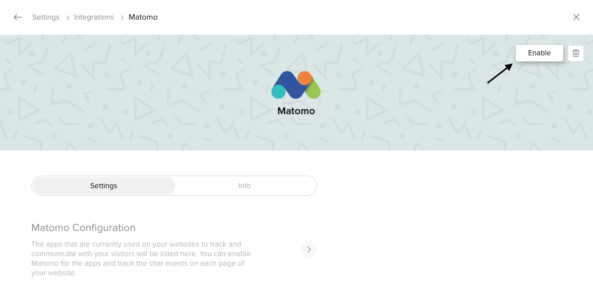 Zoho SalesIQのコードをWebサイトに設置した後、次の手順で連携を有効にすると、チャット情報がMatomoに送信されます。