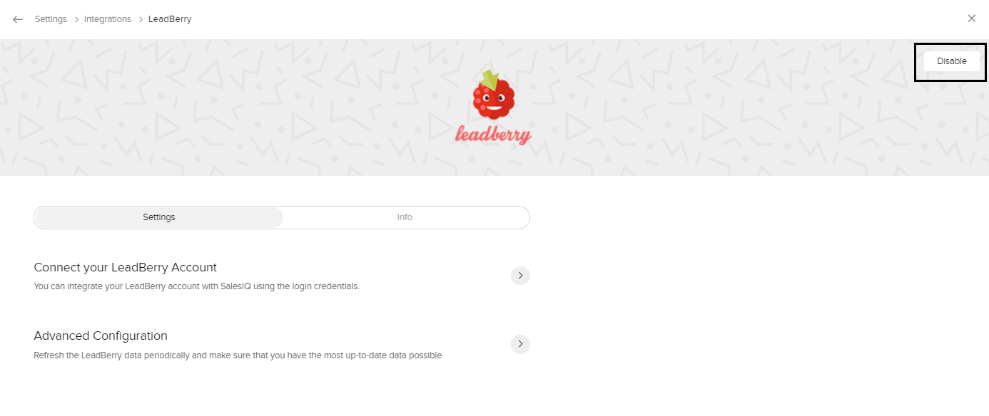 必要に応じて、いつでもLeadberryとZoho SalesIQの連携の連携を無効にできます。