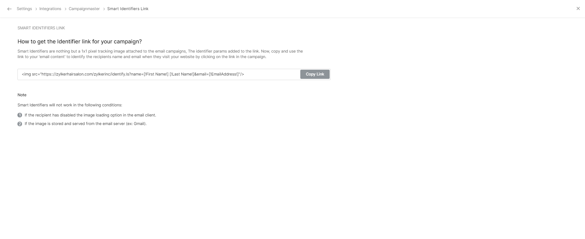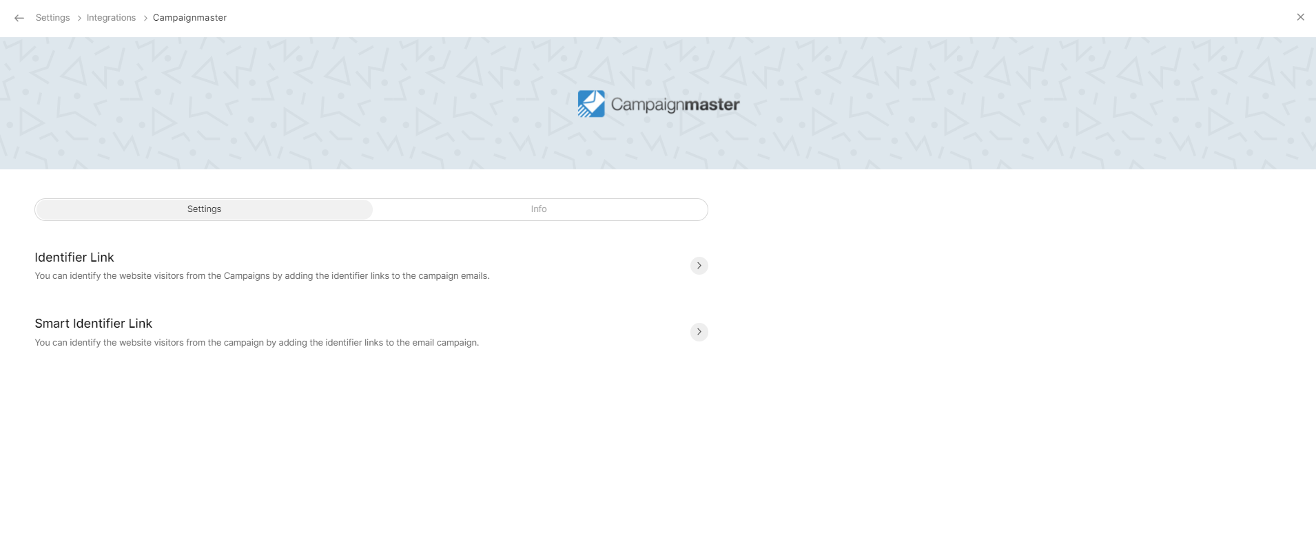 2. Campaignmaster連携の設定画面には、次の2つの項目があります: [識別リンク] [スマート識別リンク]