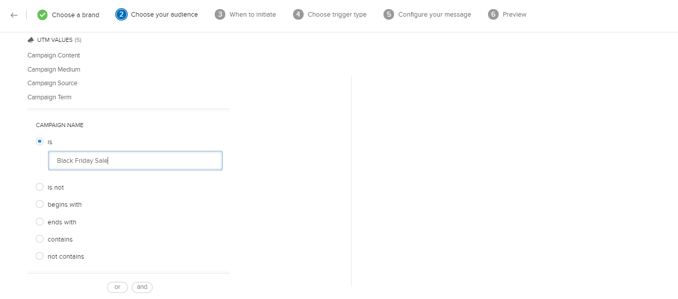 3. [UTMの値]欄から項目を選択して、条件を設定します。 [次へ]をクリックして、各リングに条件を設定します。優先度リングに名前を付け、[保存する]をクリックします。