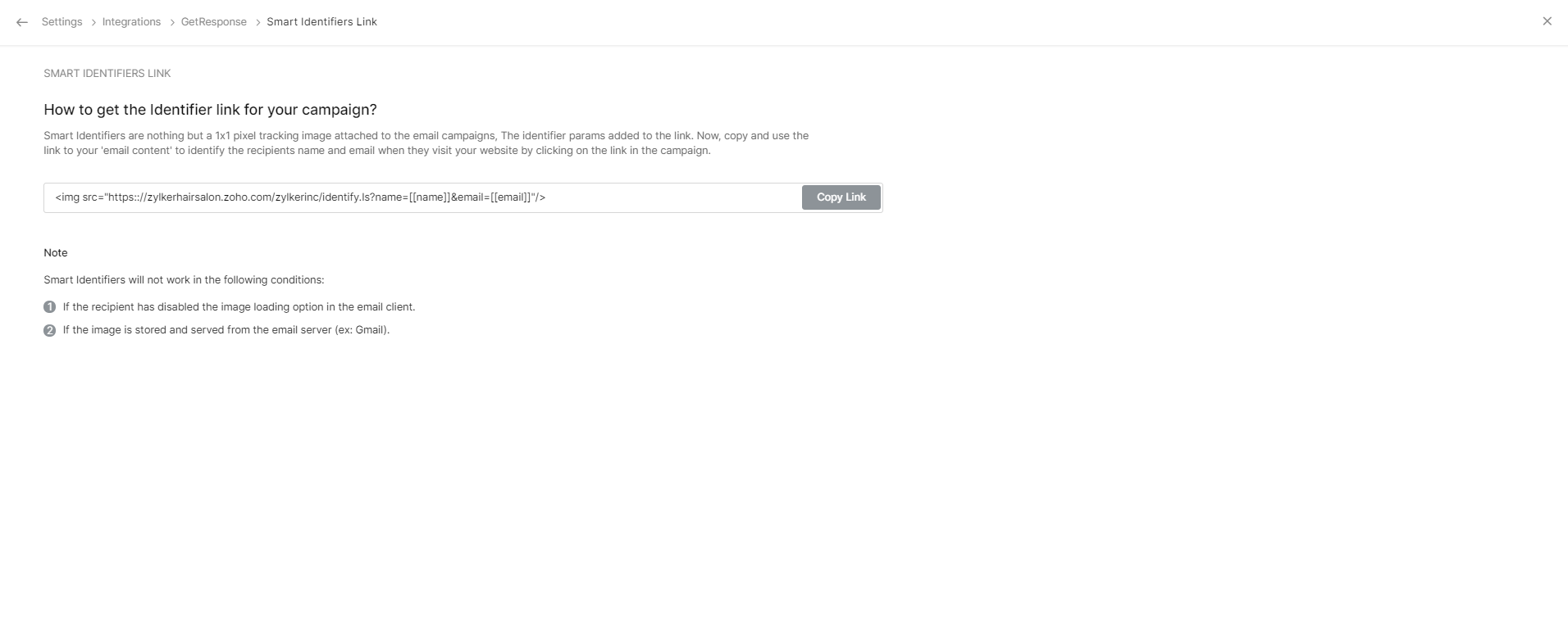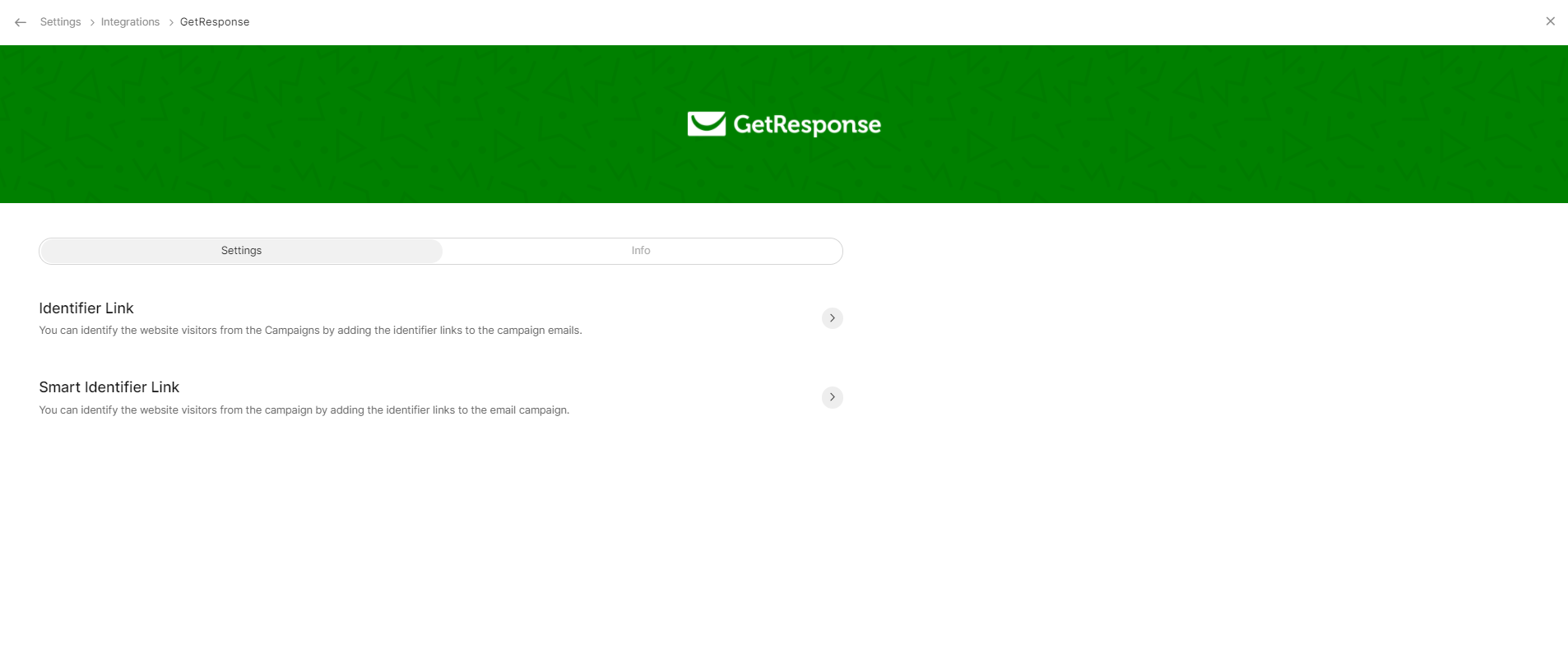 2. GetResponse連携の設定画面には、次の2つの項目があります:[識別リンク][スマート識別リンク]