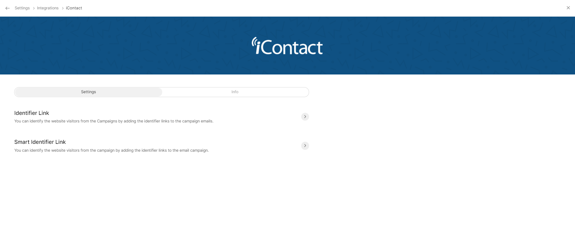 2. iContact連携の設定画面には、次の2つの項目があります:[識別リンク][スマート識別リンク]