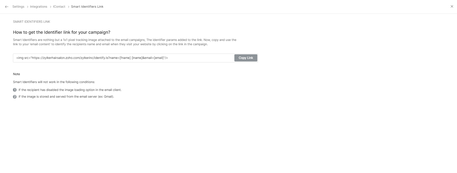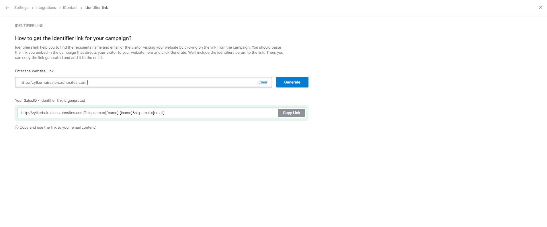 配信メールに記載したリンク(顧客をWebサイトに誘導するリンク)にZoho SalesIQの次のパラメーターを追加すると、iContactの配信メールからWebサイトにアクセスした訪問者を識別できます。