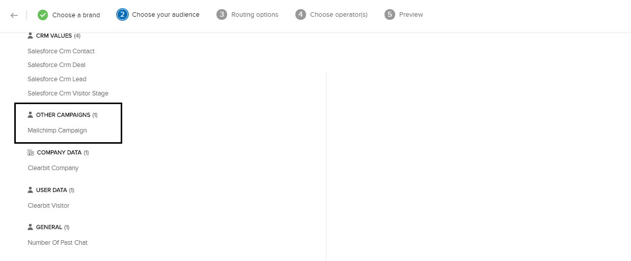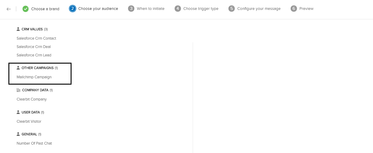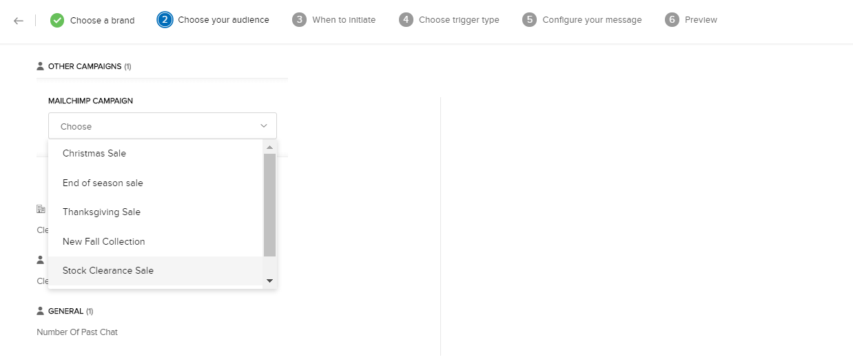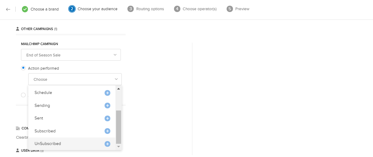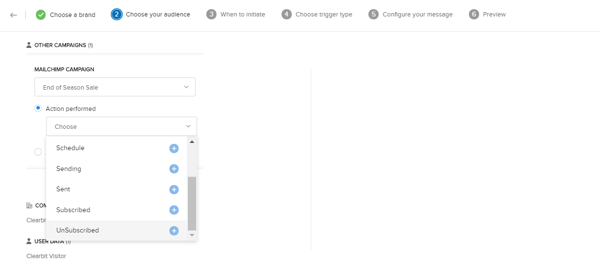 2. 条件の一覧から、[MailChimpのキャンペーン]を選択します。
