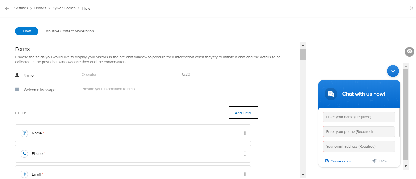1. [設定]→[カスタマイズ]→[ブランド]→[(ブランド名)]→[フロー管理]の順に移動します。