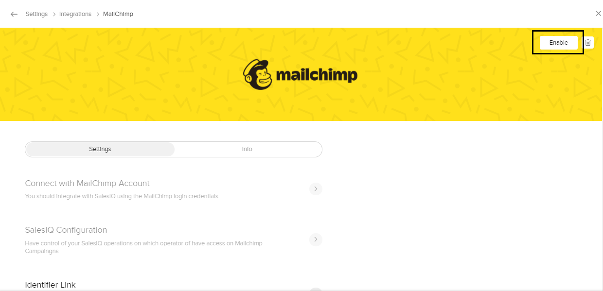 5. これで、MailChimpアカウントとZoho SalesIQの連携が完了します。