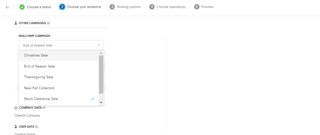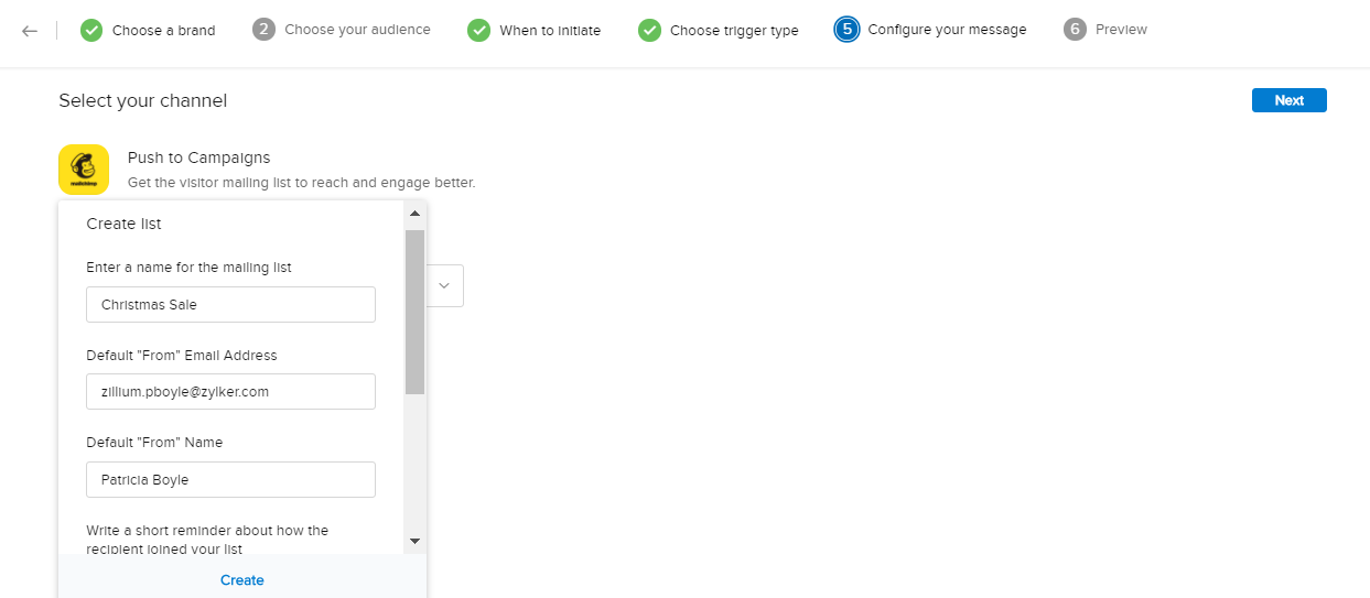 Zoho SalesIQを使用すると、チャットを開始する前の画面で、[メール配信リストへの追加]機能を設定できます。この設定により、訪問者がMailChimpから配信するメールマガジンに登録できるようになります。