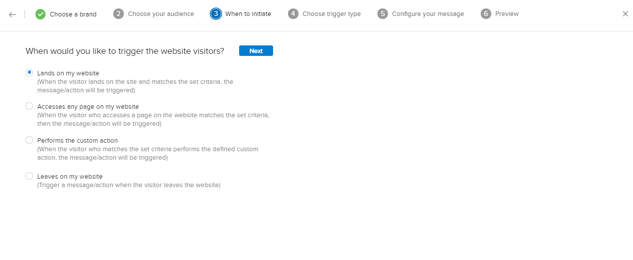 5. 訪問者リストを取得する基準となる行動を選択します。[次へ]をクリックします。