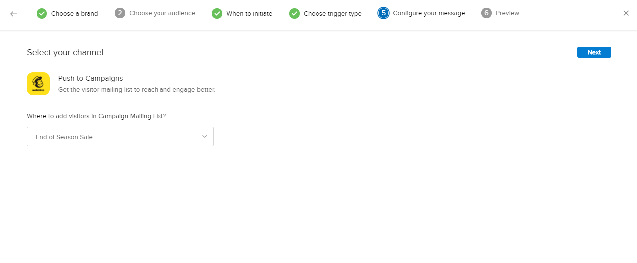 8. 次に、訪問者を追加する配信リストを選択します。次のいずれかの方法で配信リストを指定できます: