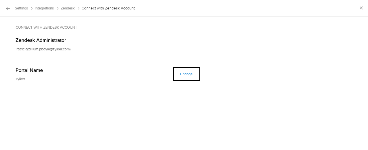 - Zoho SalesIQアカウントが関連付けられているZendeskの管理者アカウントを変更するには、[変更する]ボタンをクリックします。