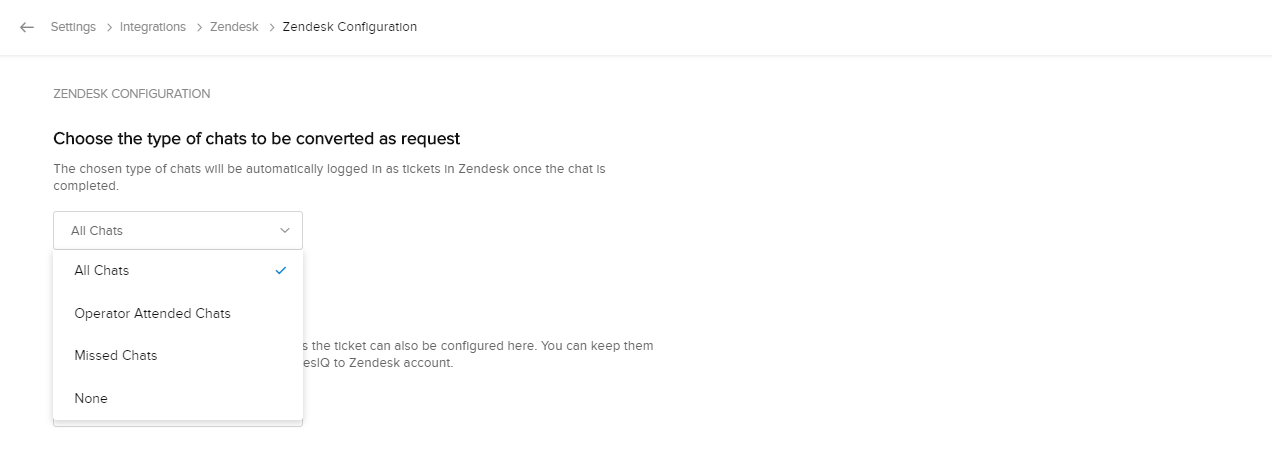 - すべてのチャット:すべての訪問者のチャットが、Zendeskのチケットに変換されます。