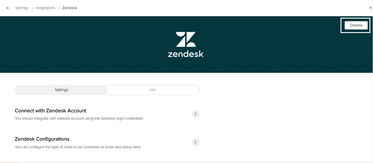 必要に応じて、いつでもZoho SalesIQとZendeskの連携を無効にできます。
