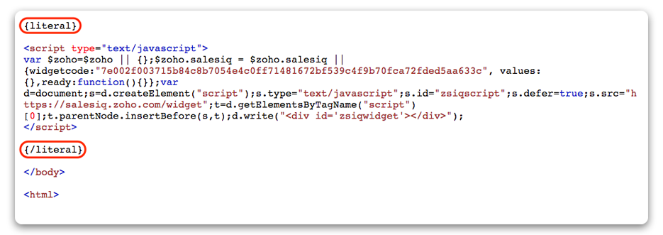 {literal} Zoho SalesIQのチャットのコード をコピーして、2つのタグの間に貼り付けます。{/literal}