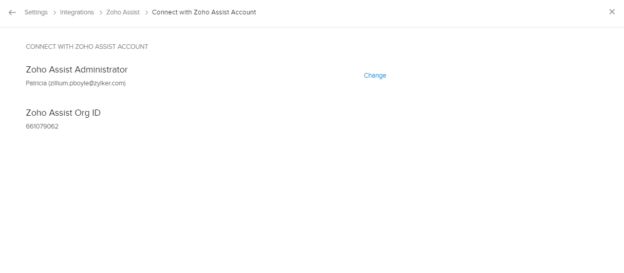 5. 必要に応じて、 [アカウントを変更する] をクリックして、Zoho Assistに関連付けられているアカウントを変更することもできます。