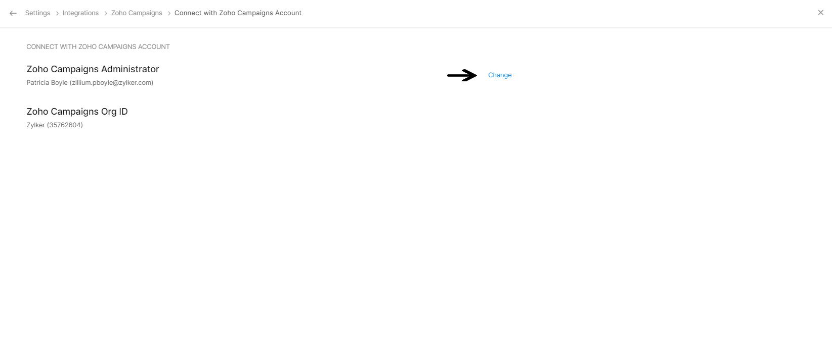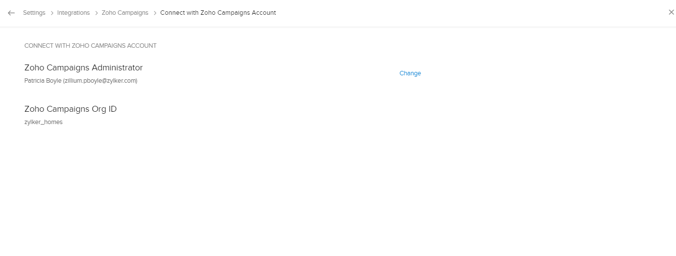 連携済みのアカウントを適切なZoho Campaignsアカウントに変更するには