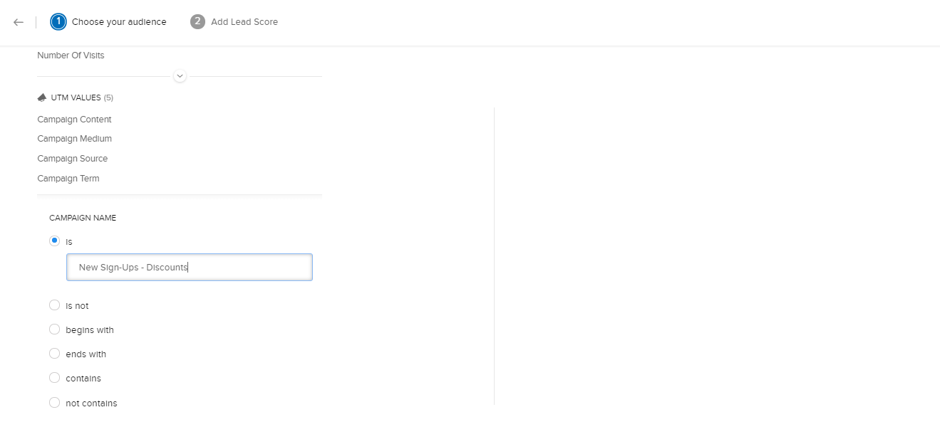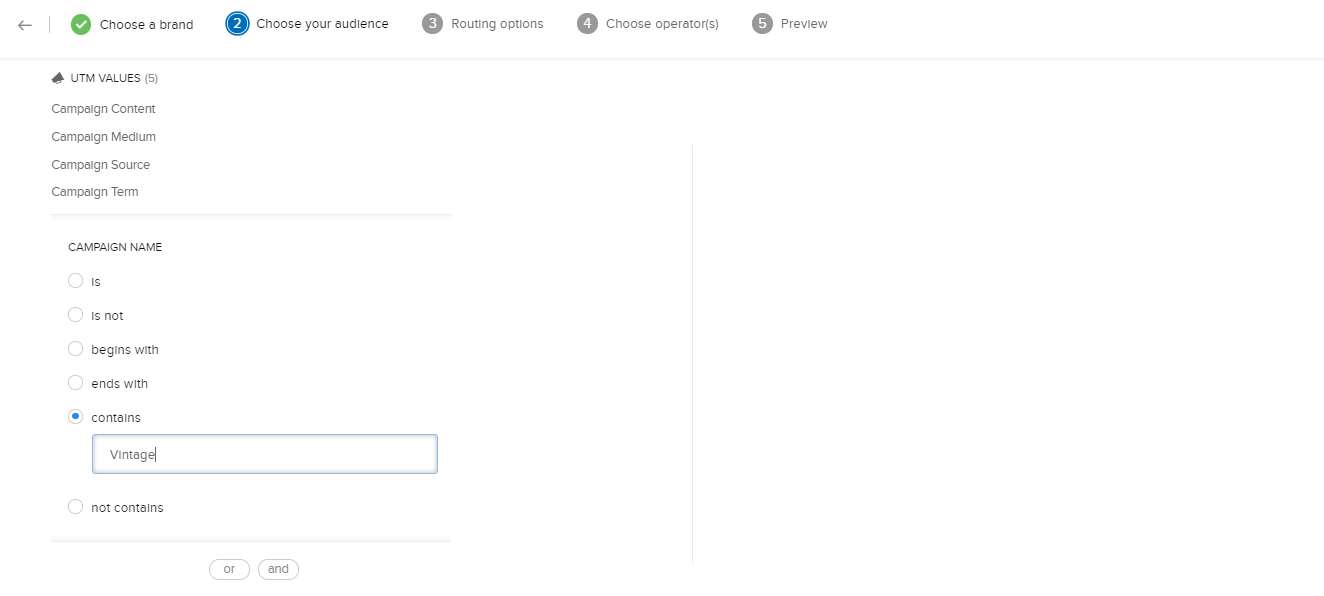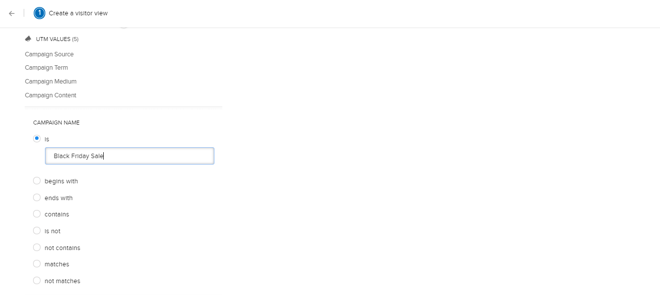 2. [UTMの値]欄から項目を選択して、条件を設定します。