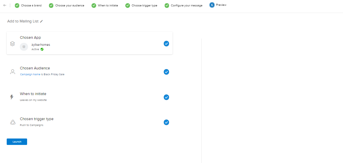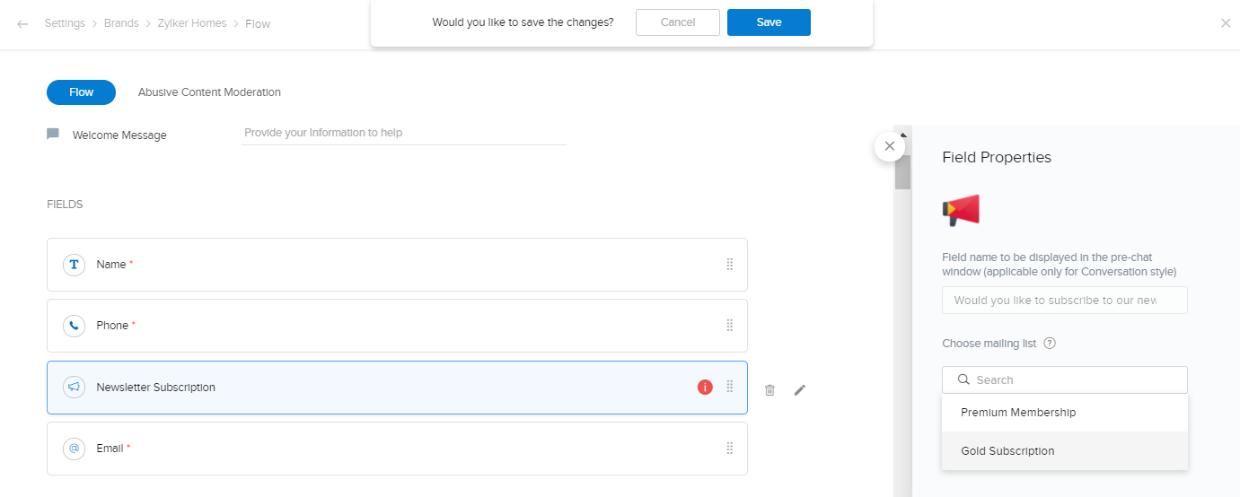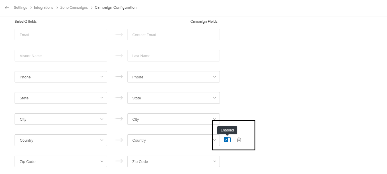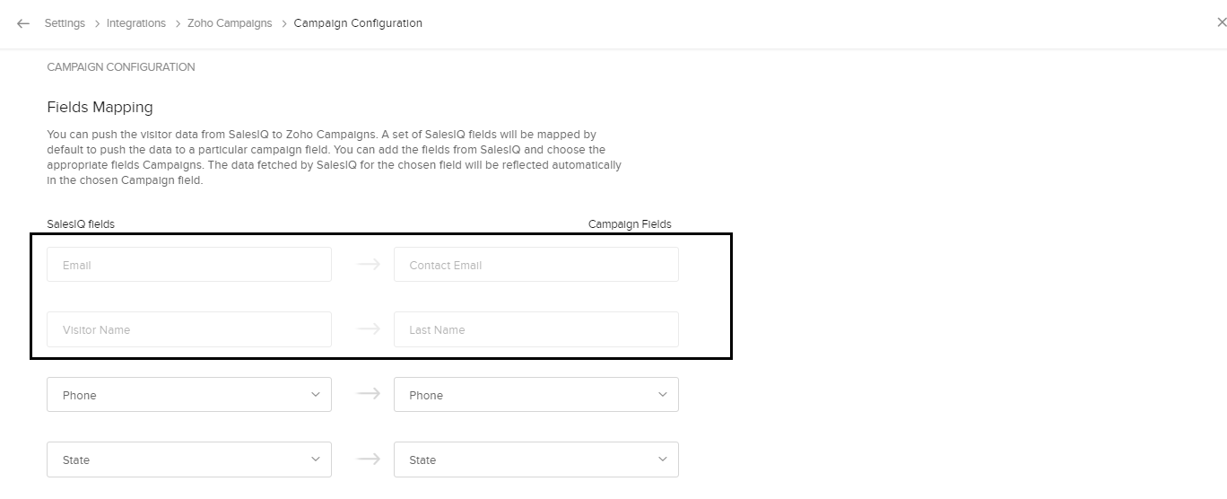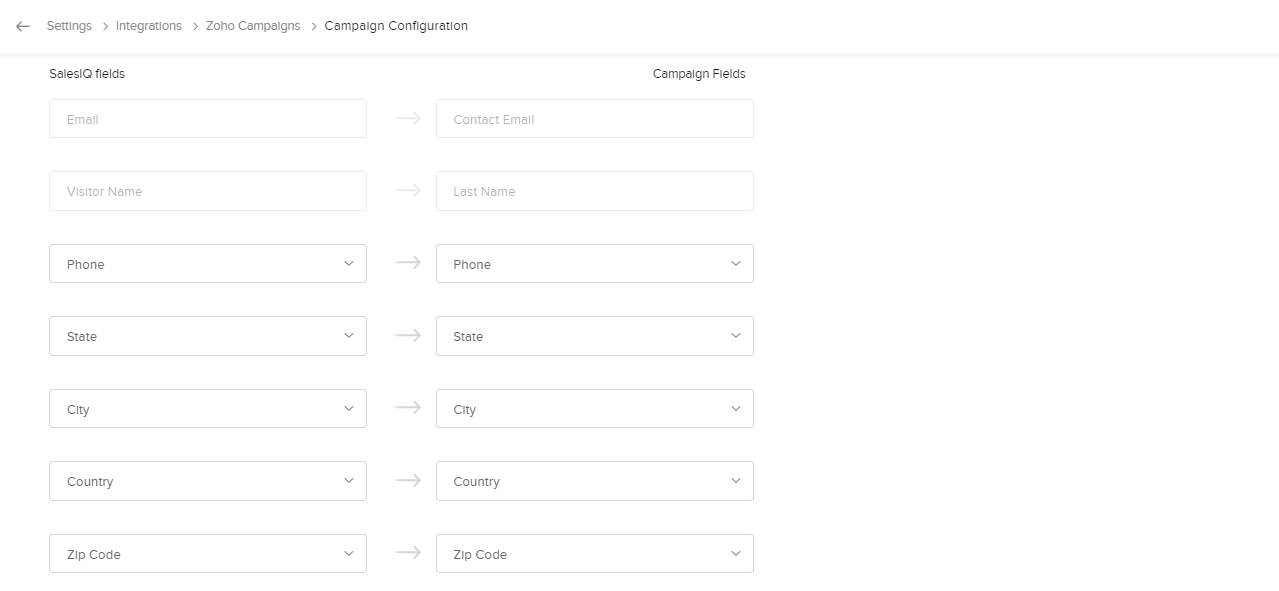 項目を関連付けて、Zoho SalesIQからZoho Campaignsにデータを自動的に送信するには