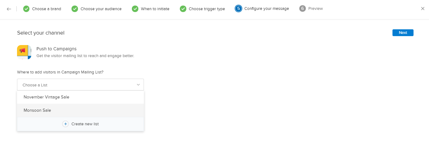 2. 既存の配信リストに訪問者を追加する場合は、既存の配信リストの一覧から選択できます。