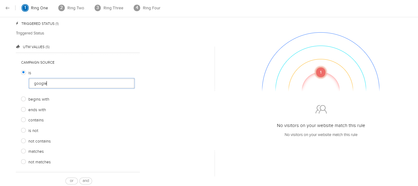 Zoho SalesIQでは、配信したメールのパラメーター(UTM)に基づいて条件を設定し、訪問者を抽出して優先度順に表示できます。