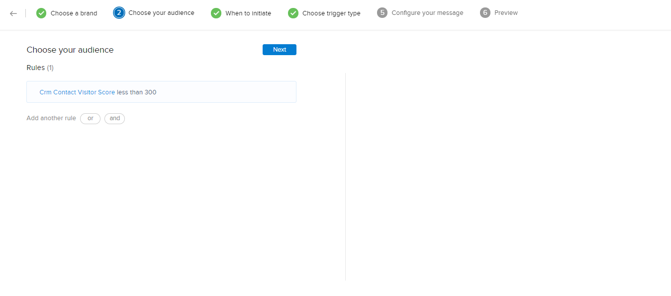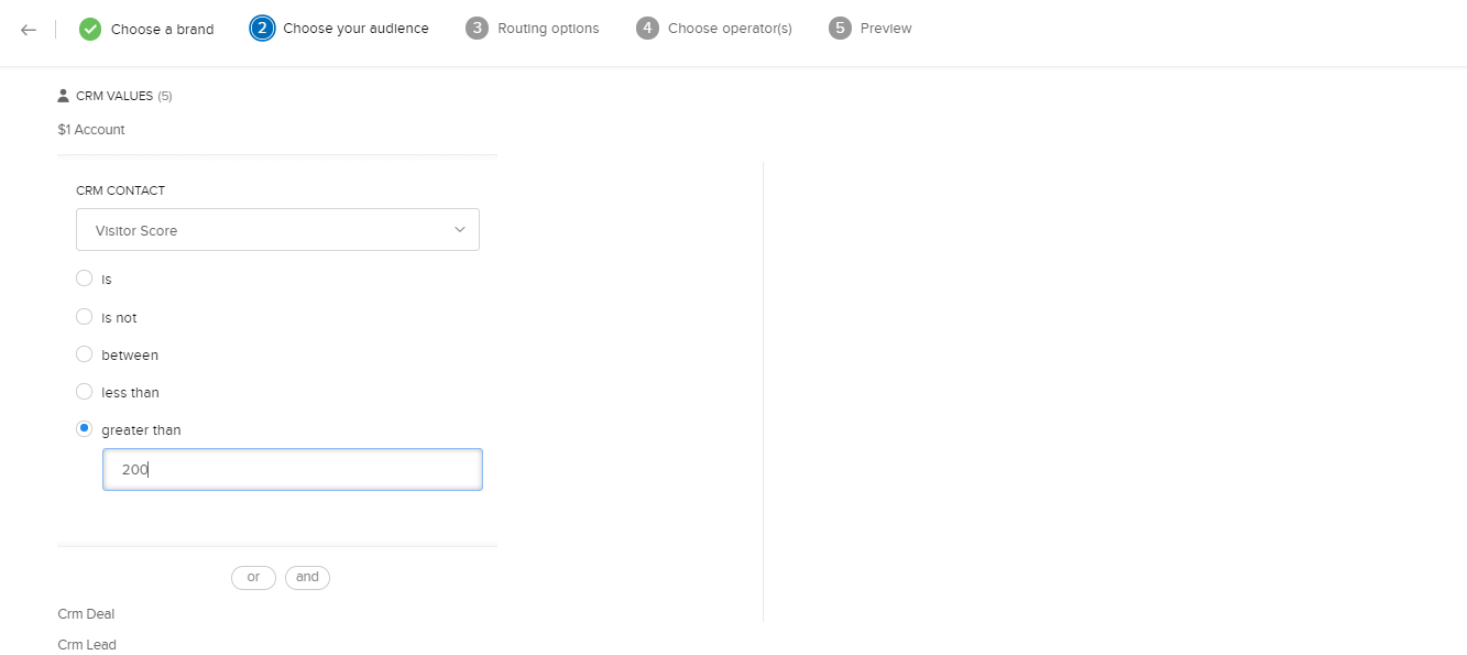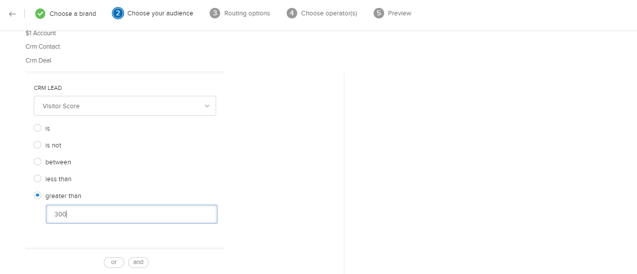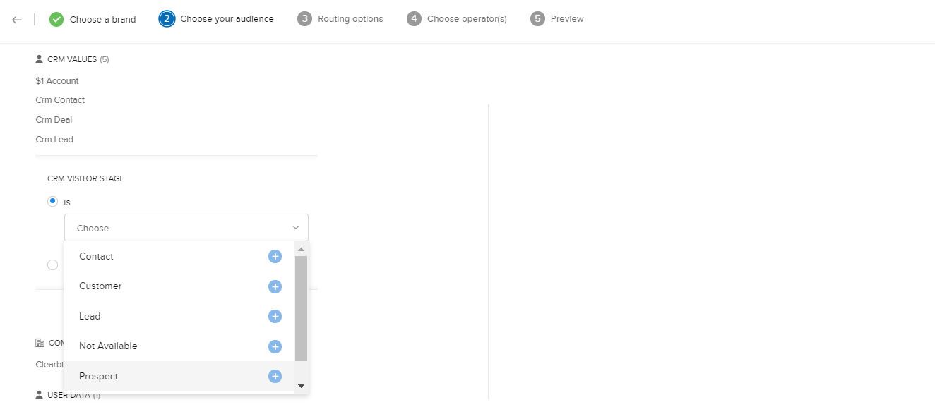 - ブランドを選択し、訪問者の条件を設定した後、訪問者の割り当て設定で、[選択した担当者に割り当てる]設定を選択します。