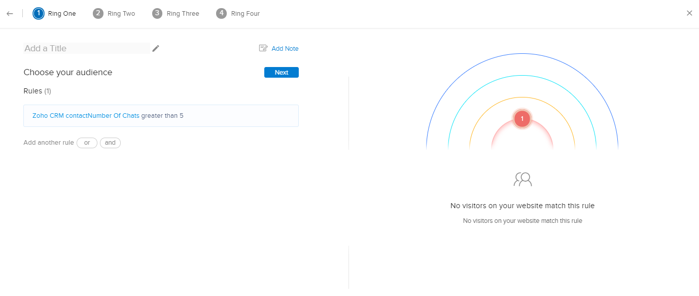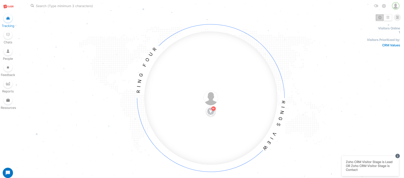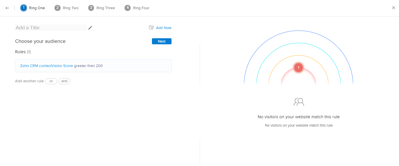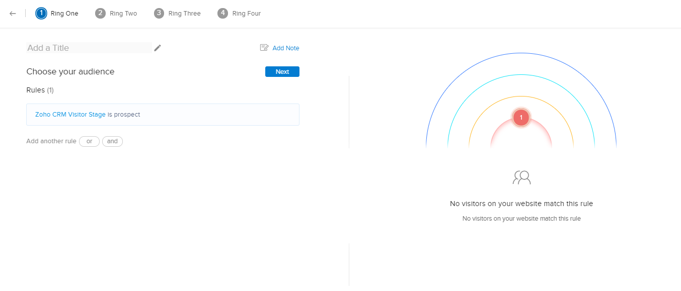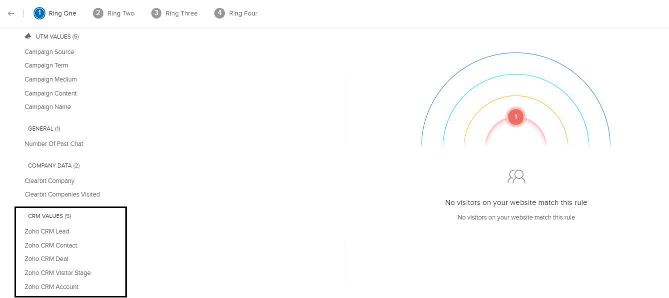 [追跡]画面では、担当者がZoho CRMの訪問者のステージに基づいて訪問者を優先度付けする条件を設定できます。