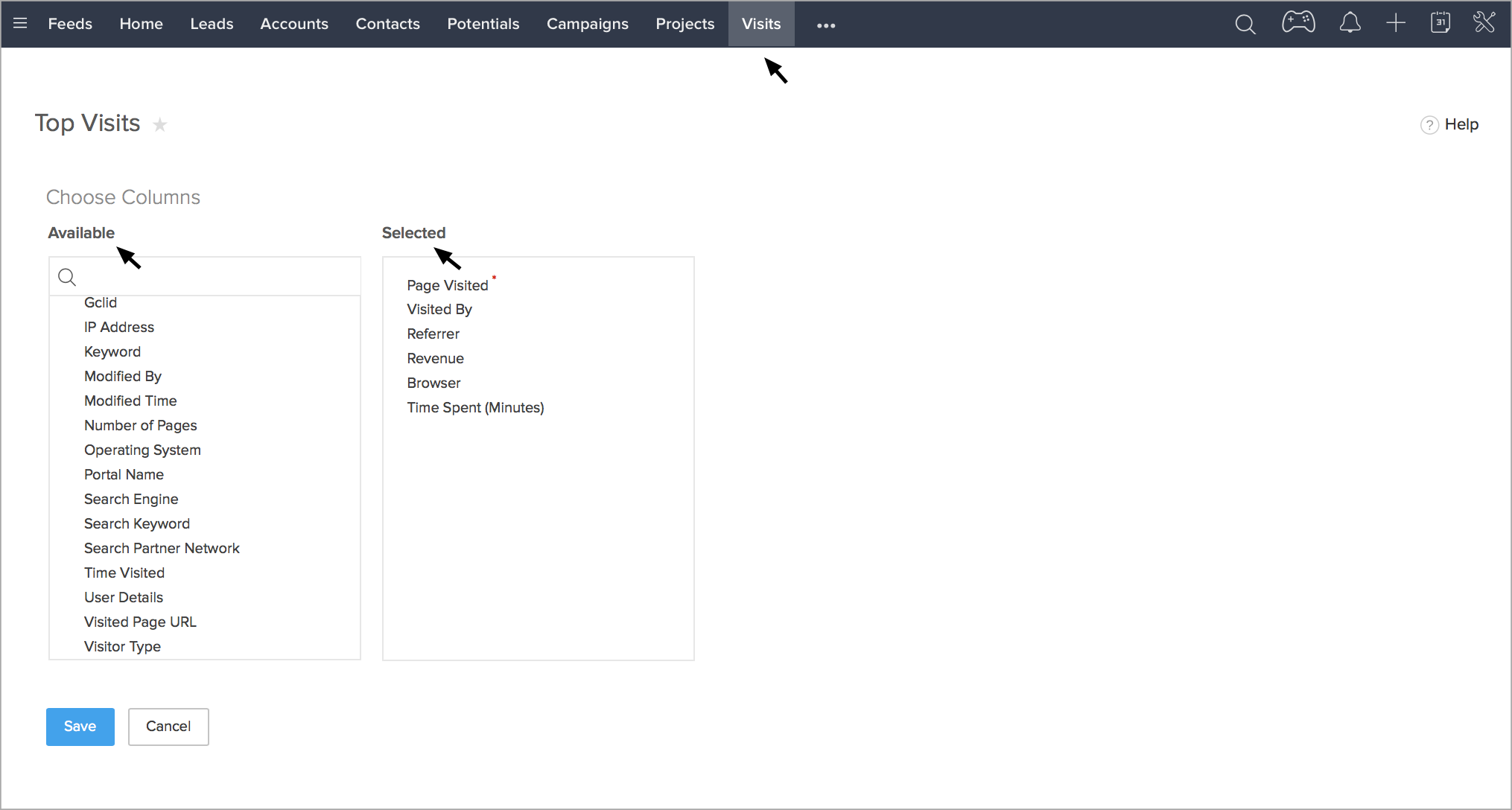 Zoho CRMでWebサイトの訪問者を表示するには