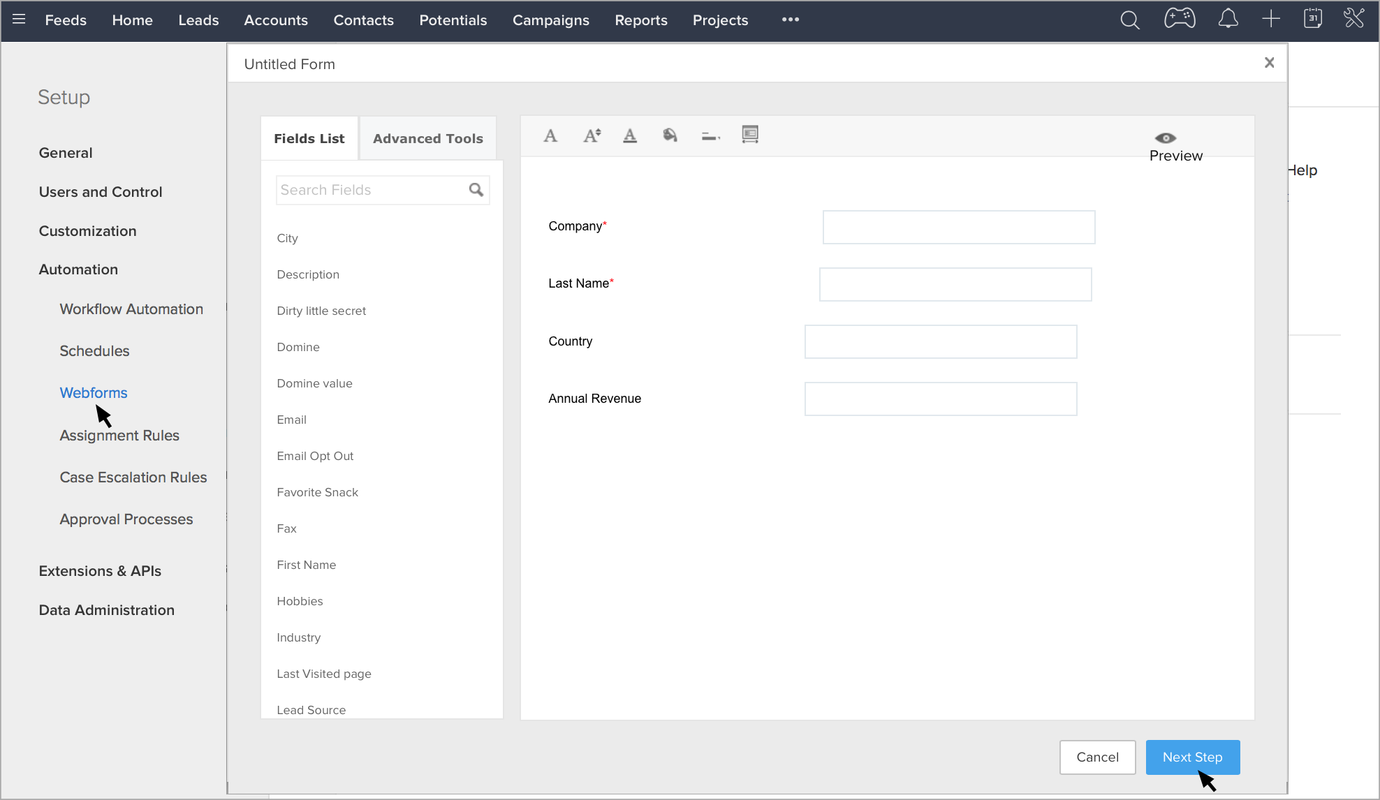 - まず、Zoho CRMのWebフォームを作成します。Zoho CRMでのWebフォームの作成方法はこちら