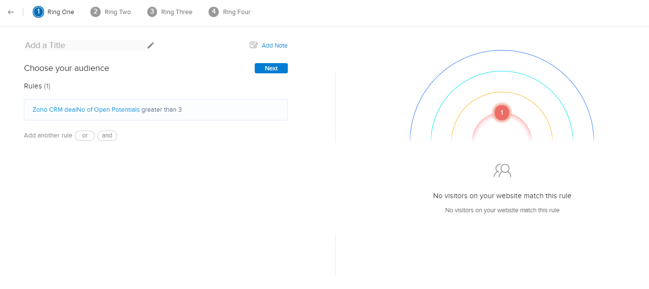 [追跡]画面では、担当者がZoho CRMの商談情報に基づいて訪問者を優先度付けする条件を設定できます。