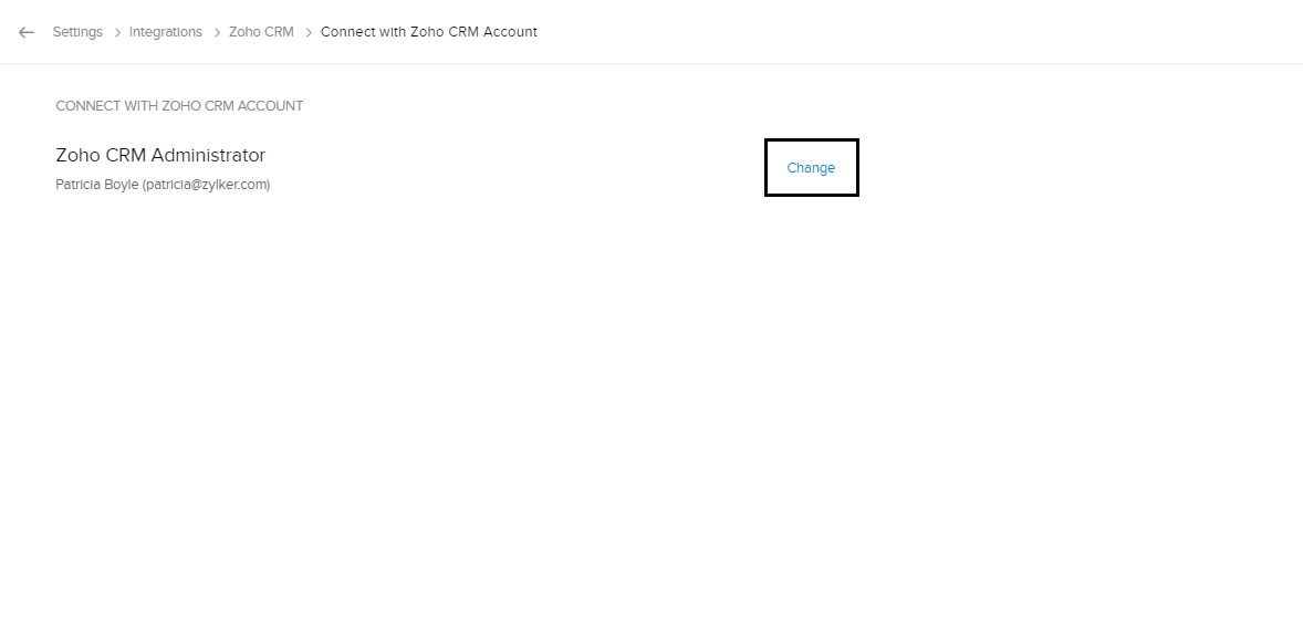 システムで設定されたZoho CRMアカウントの関連付けの変更