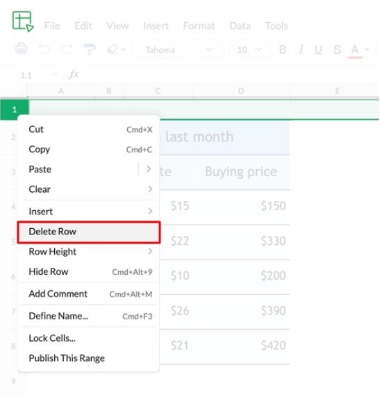 または、選択済みセルを右クリックして、そのセルを含む行や列を削除することもできます。