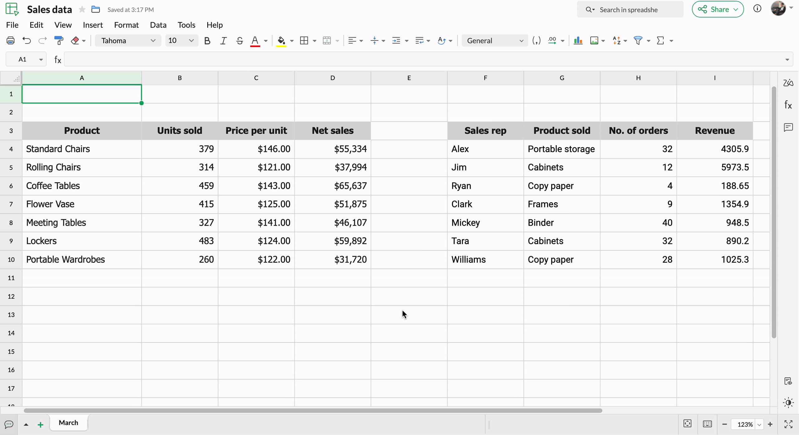 4. シート全体を選択するには、Cmd/Ctrl + A を押します。