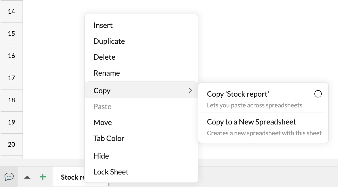 2. 「Copy > 複製する to a 新規 表計算シート」を選択します。