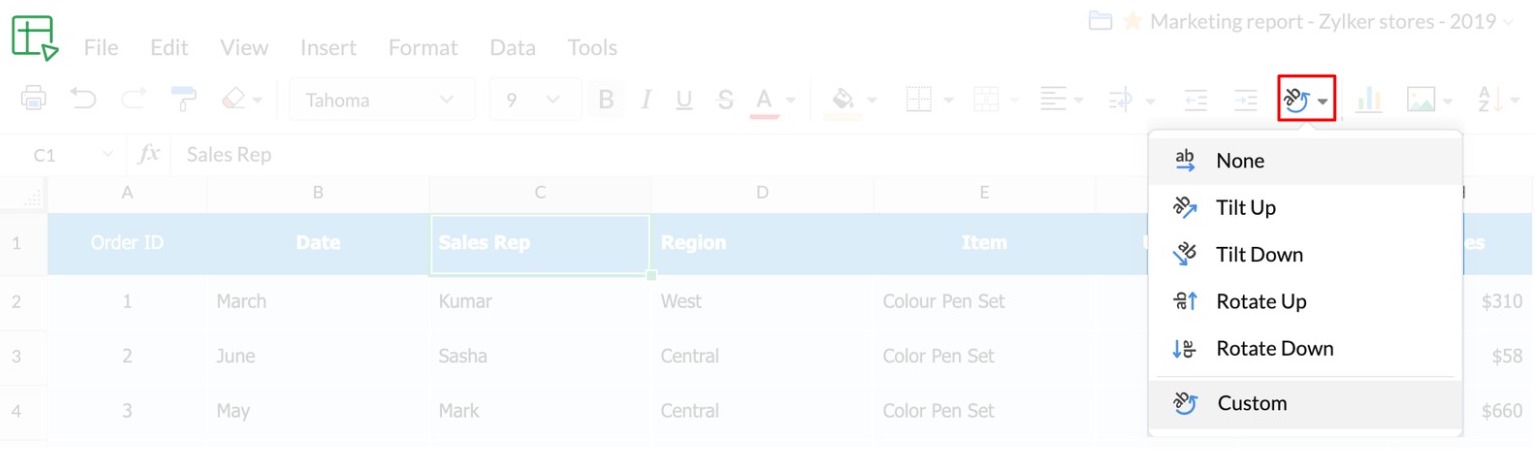 2. セル回転アイコンをクリックツールバーに位置しています。