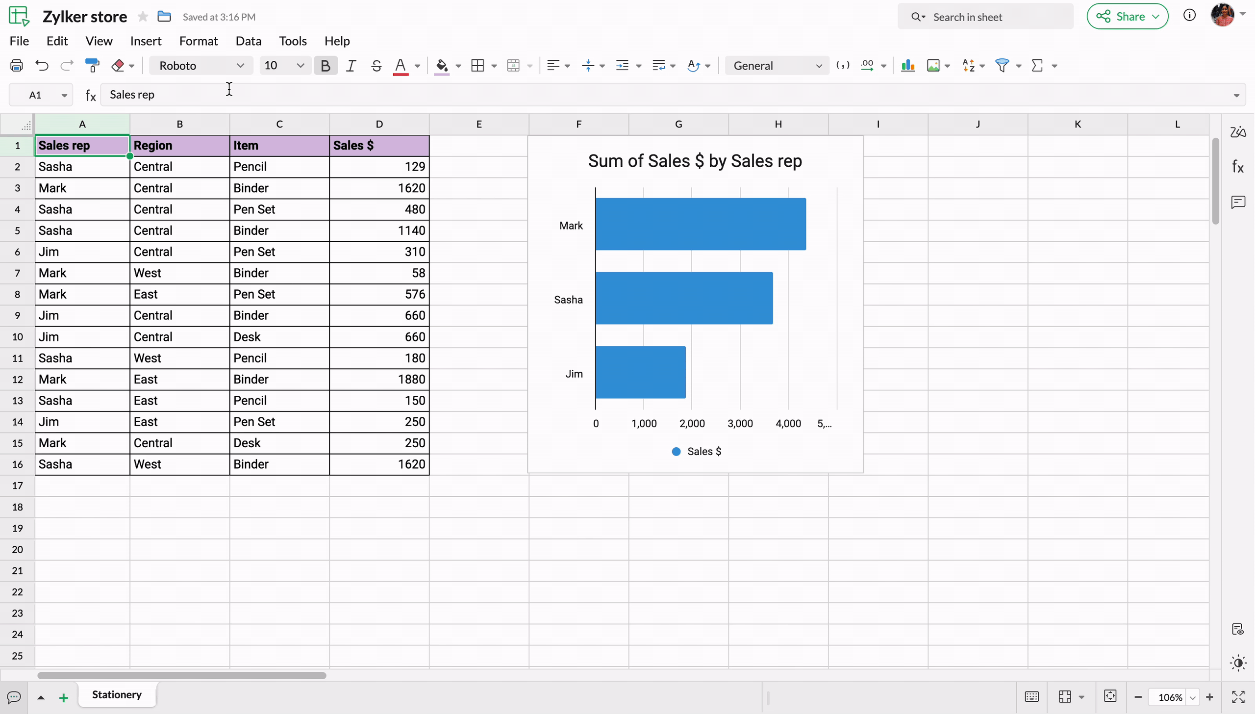 スプレッドシートにテーマを適用する方法については、次の手順に従ってください: