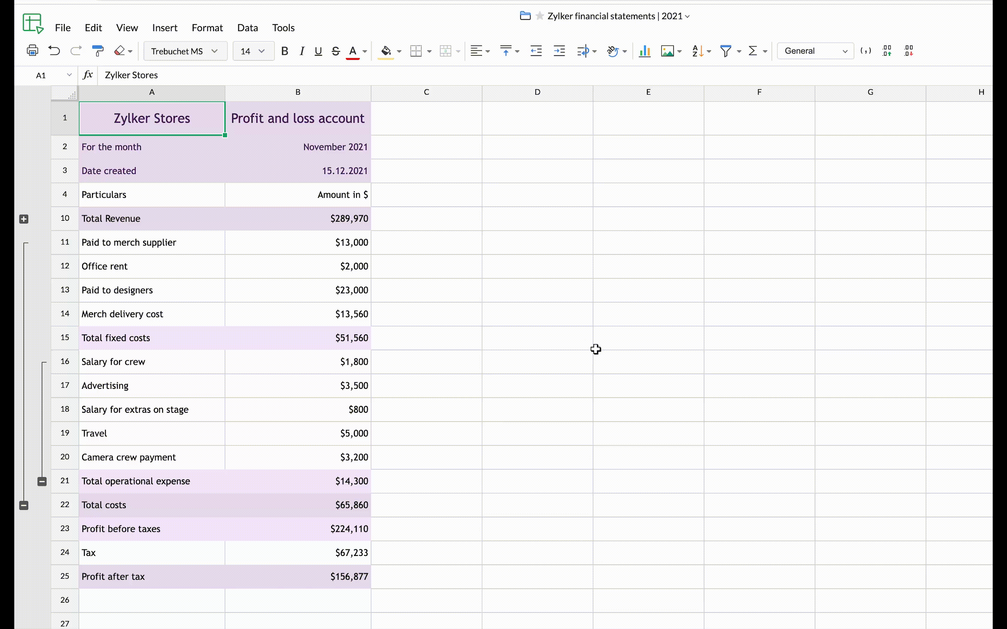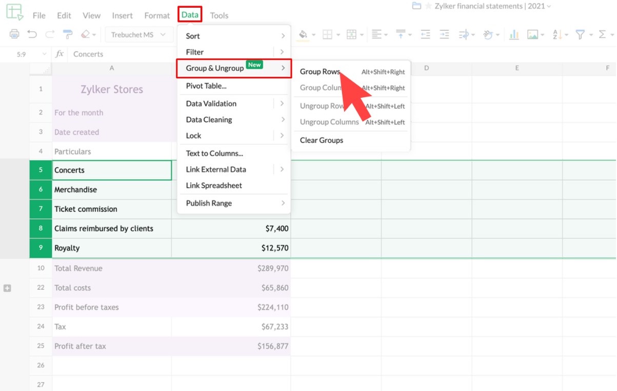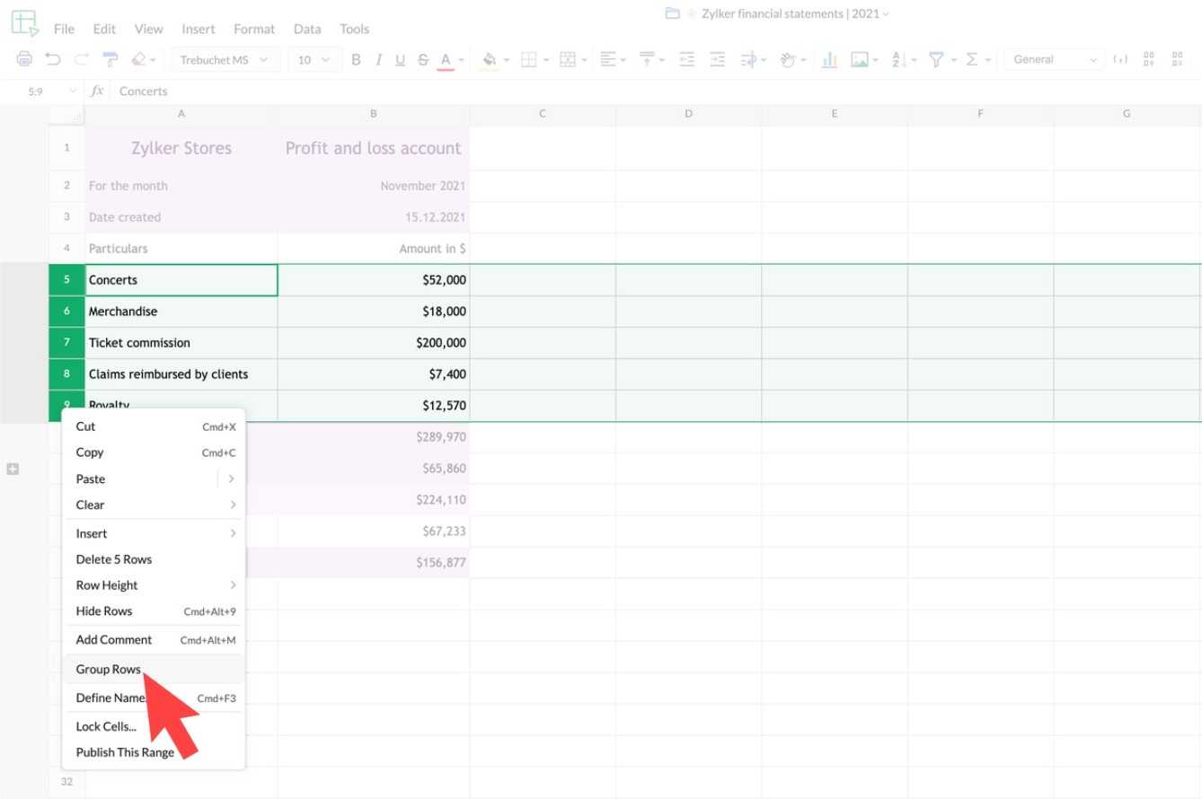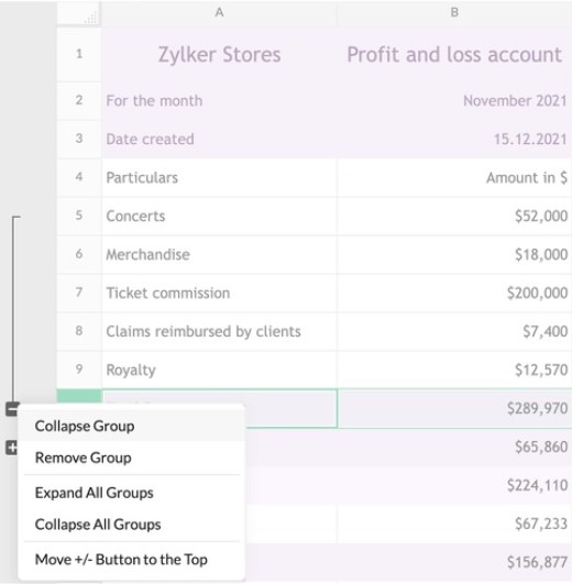 必要な行/列を選択し、それらをグループ化することで、親グループまたはサブグループを作成できます。選択済み範囲に既にグループが含まれている場合、それはサブグループになります。
