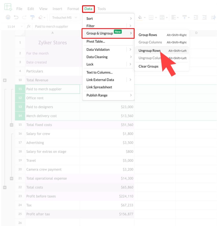 行や列をグループ化して展開または折りたたむことで、スプレッドシートをより整理された省略形にすることができます。以下が、列または行をグループ化およびグループ化解除する方法です。