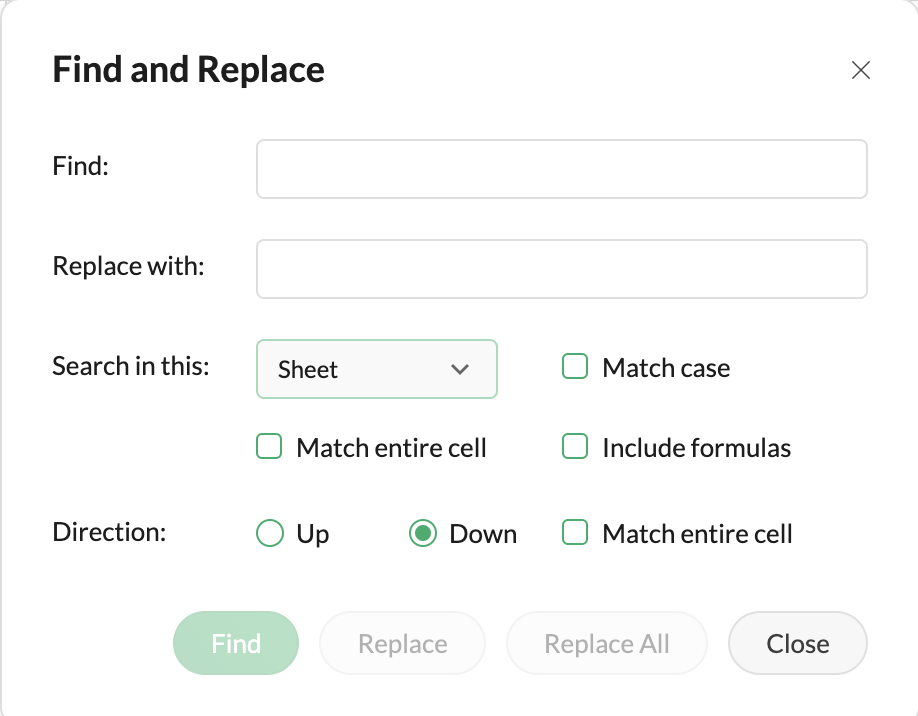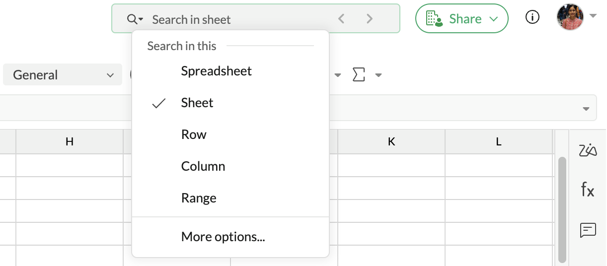 5. この置き換えを行を、列を、セルの範囲を、1つのシートを、またはスプレッドシート全体に適用するか指定してください。