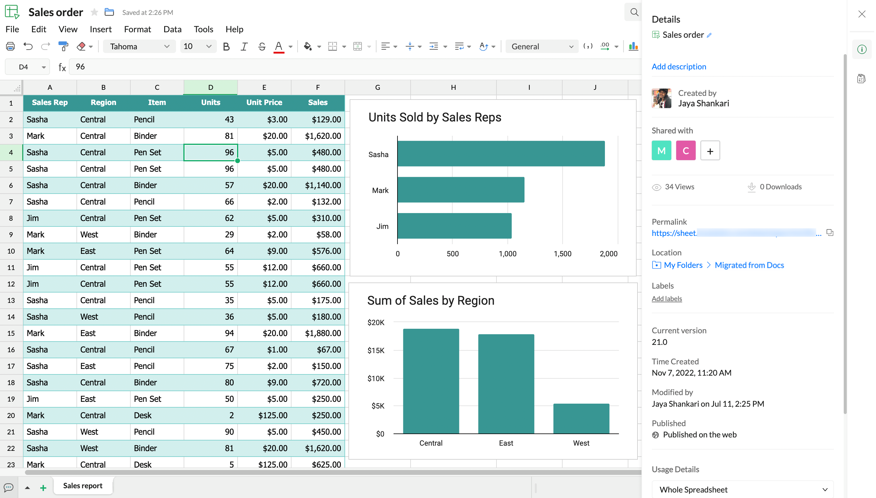 • 更新済み by: これは誰が最後にスプレッドシートを編集したか、およびその日時の詳細を提供します。