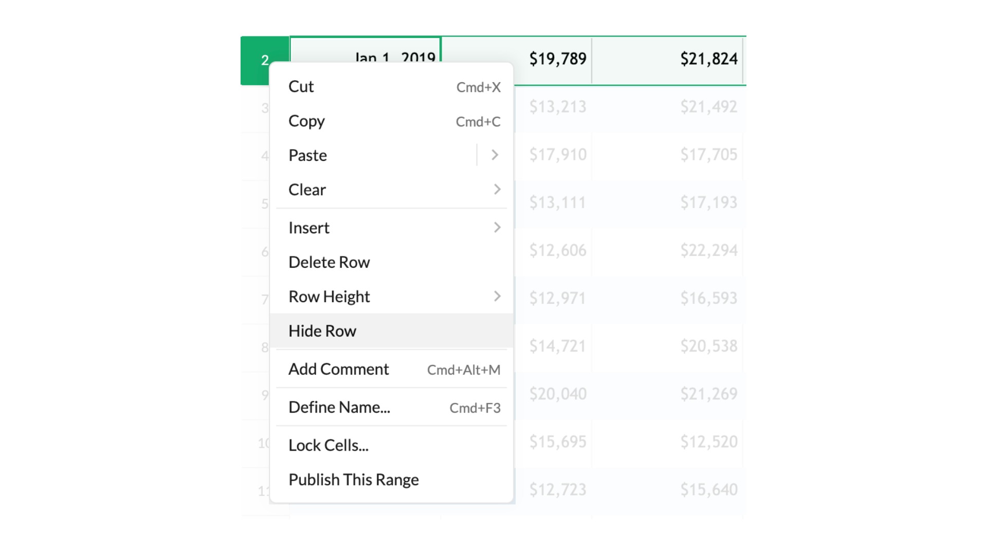 5. 非表示にしたい選択済みの行/列/シートを操作して完了します。