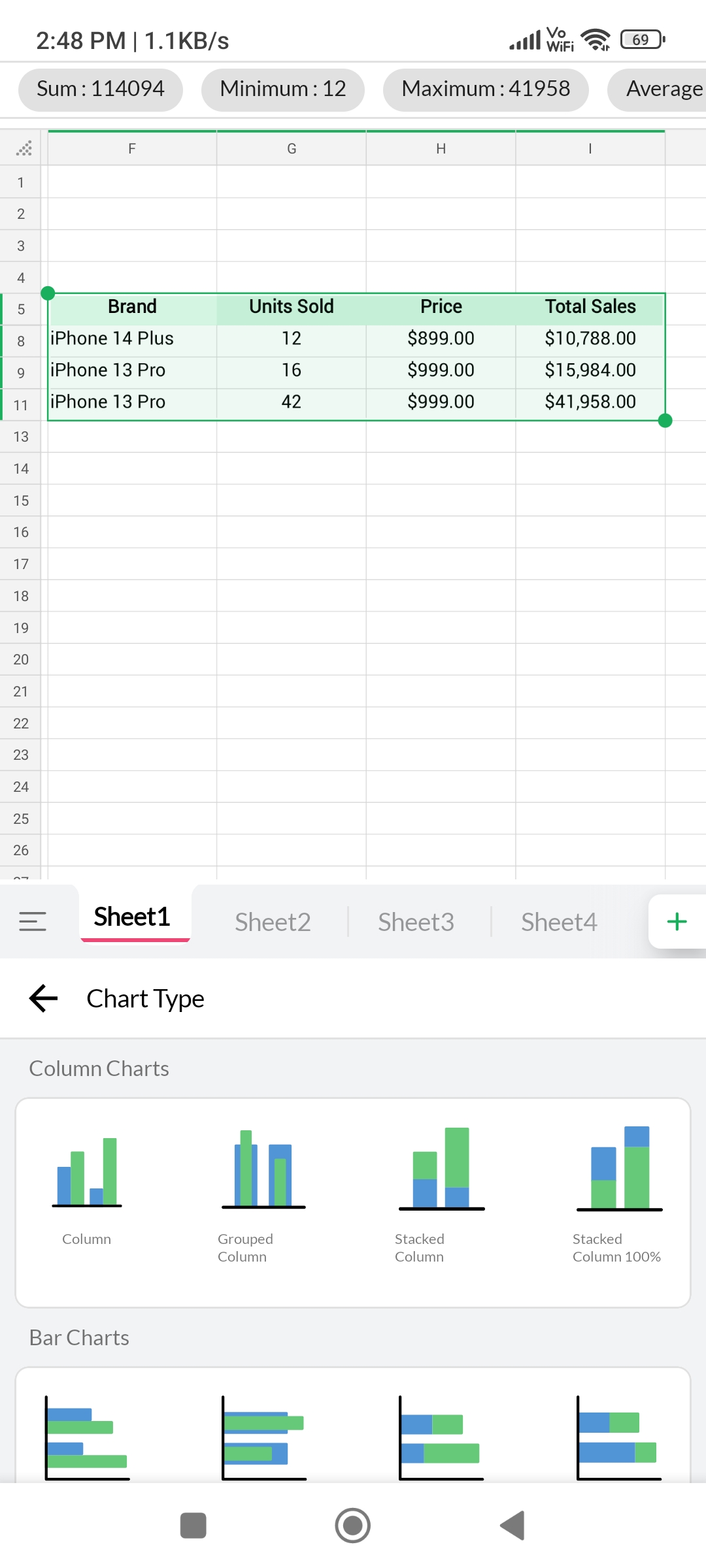 リストから作成したいチャートのタイプをタップしてください。