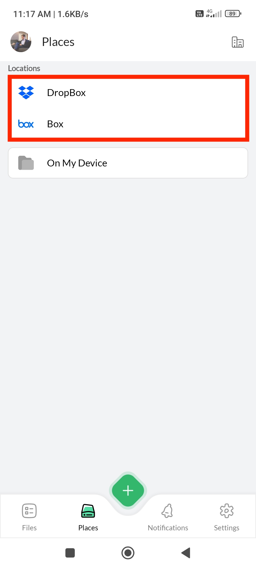 ファイルリストページの下部にあるオプションを通じてPlacesへ移動します。