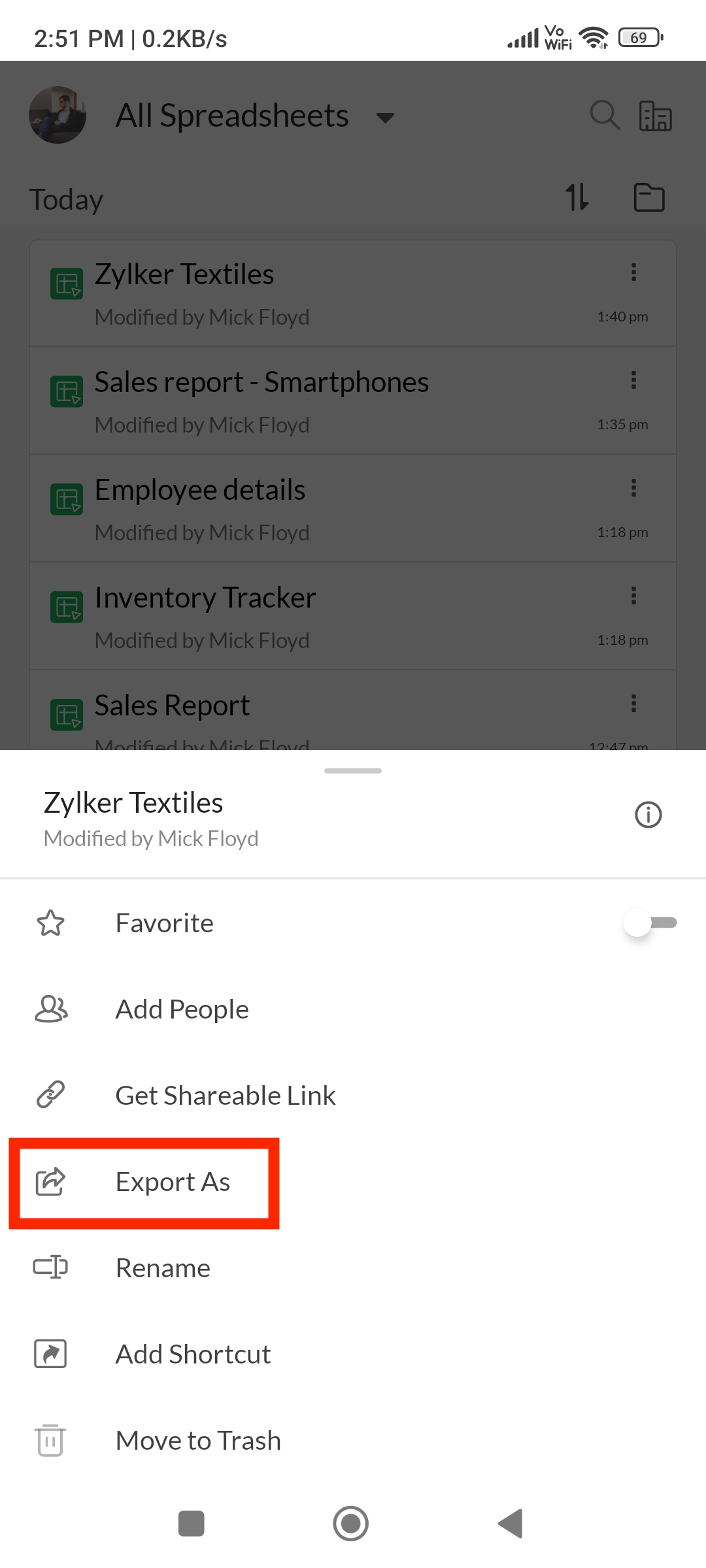 スプレッドシートをダウンロードまたはエクスポートするには、以下の手順を実行してください: