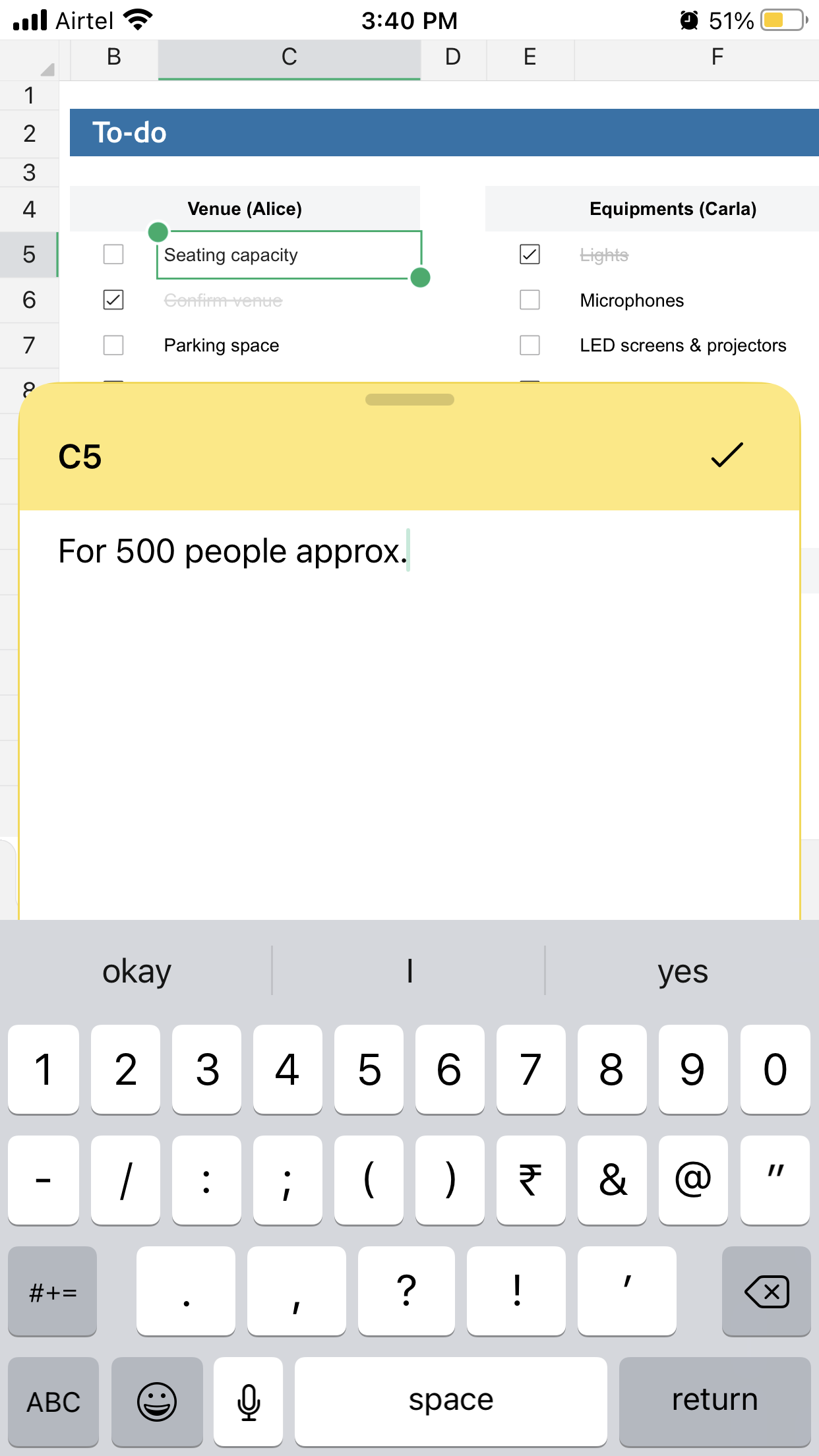 お知らせ:当社は、お客様により充実したサポート情報を迅速に提供するため、本ページのコンテンツは機械翻訳を用いて日本語に翻訳しています。正確かつ最新のサポート情報をご覧いただくには、本内容の英語版を参照してください。 ノートを追加するには: 追加したいノートがあるセルを選択します。 次に アイコンに進みます。 挿入 メニューで、メモ を選択します。 ノートに必要な内容を入力し、✓ マークをタップします。