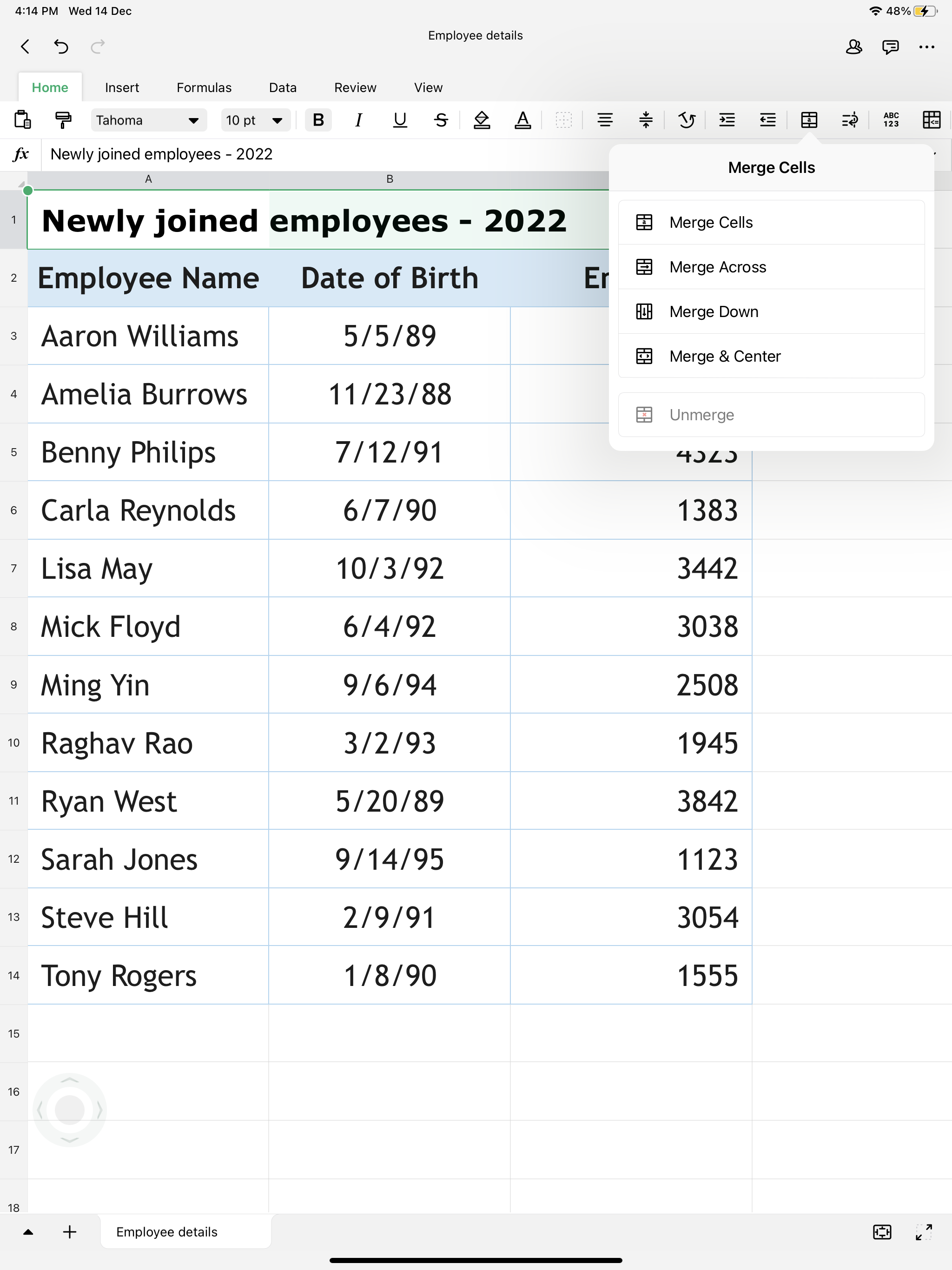 3. 利用可能なオプションから好みの結合オプションを選択してください。