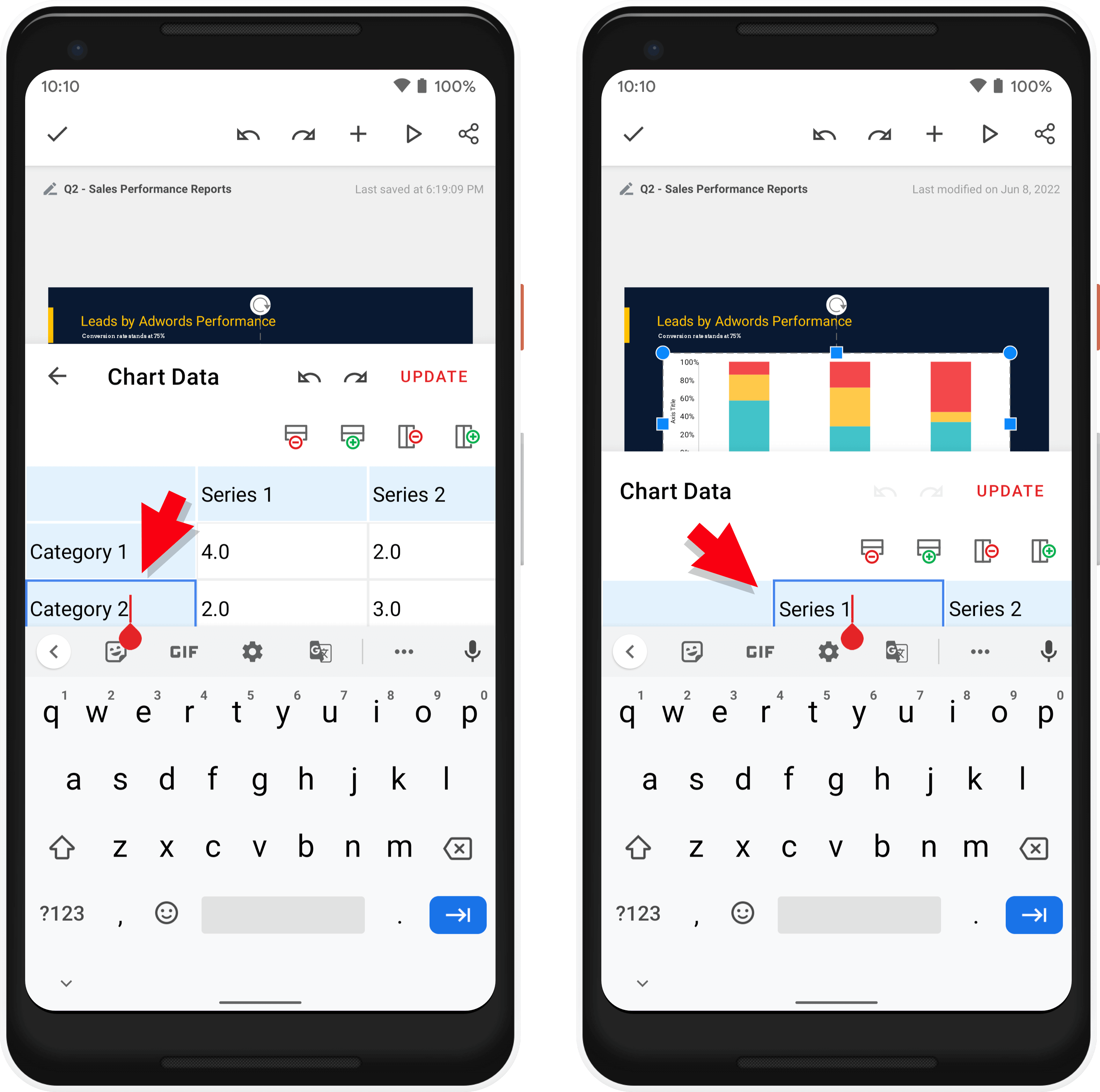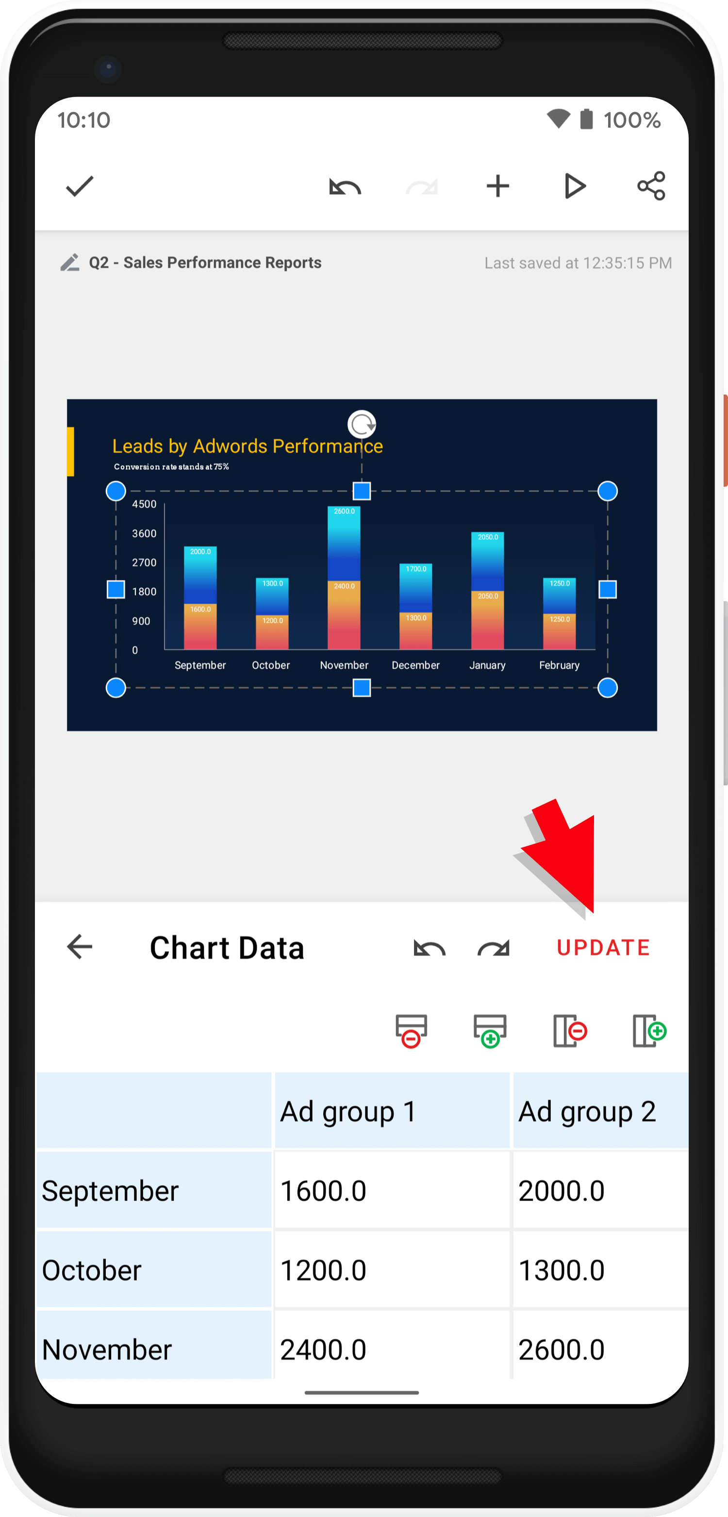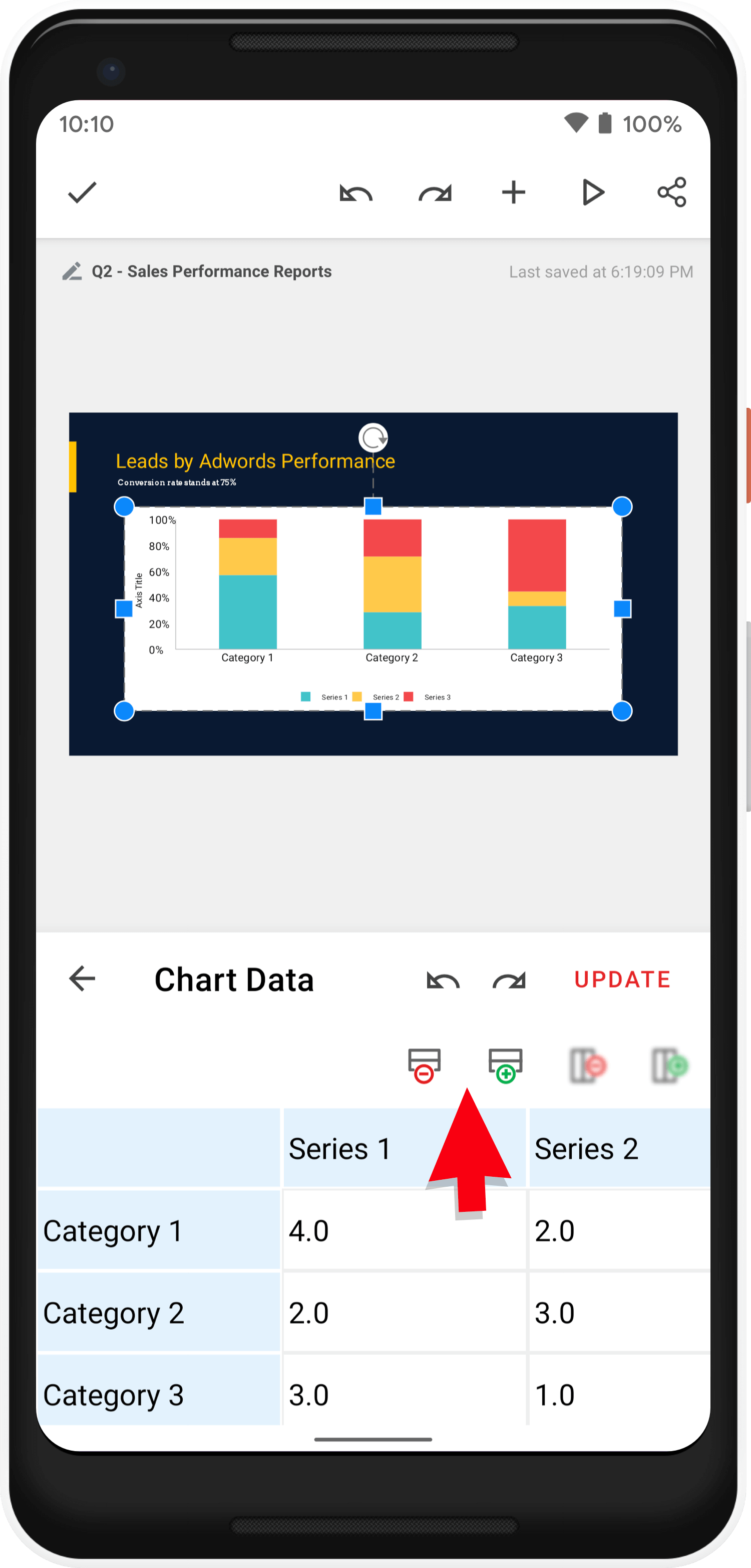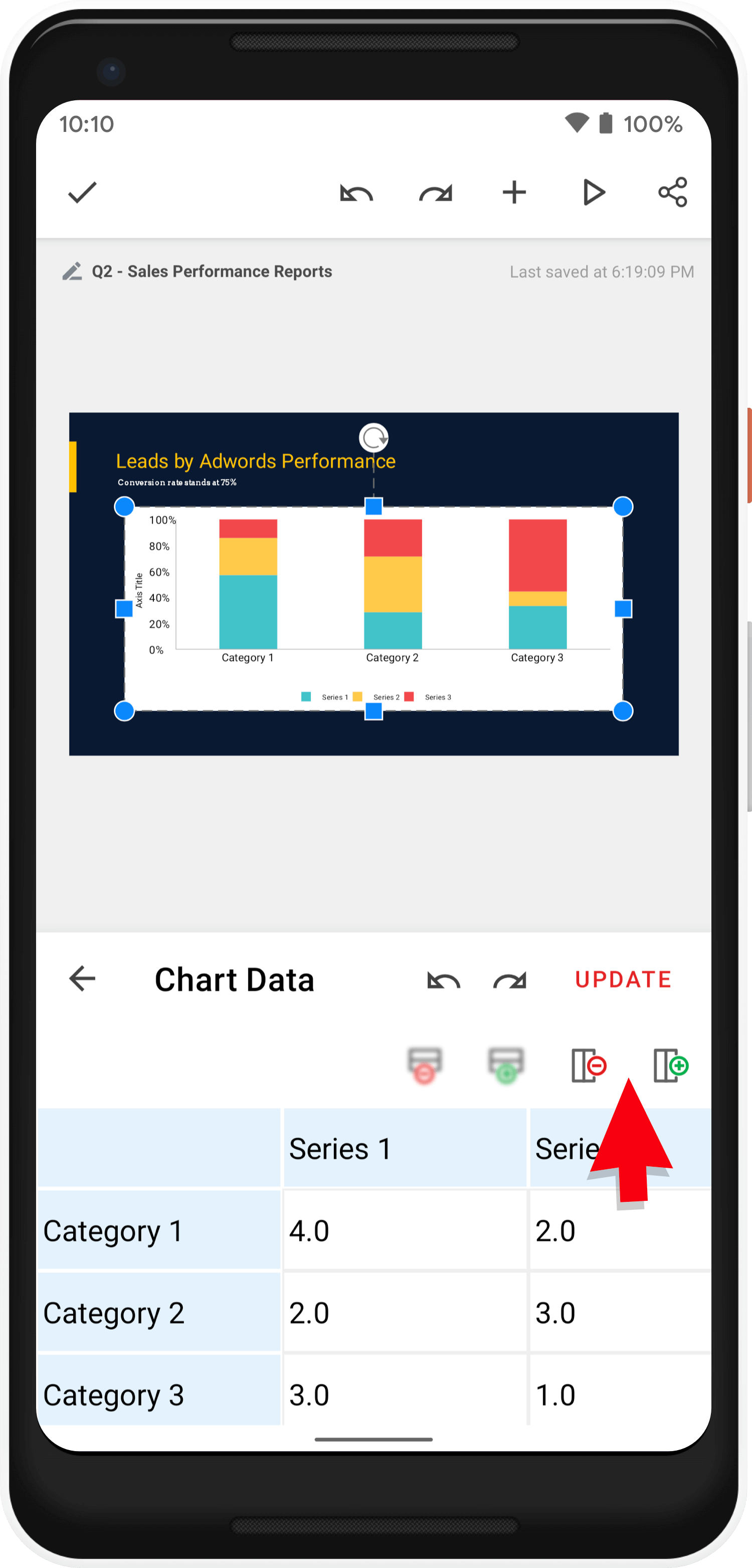 右上の更新するをタップして、Chart Data 箱の変更を保存します。