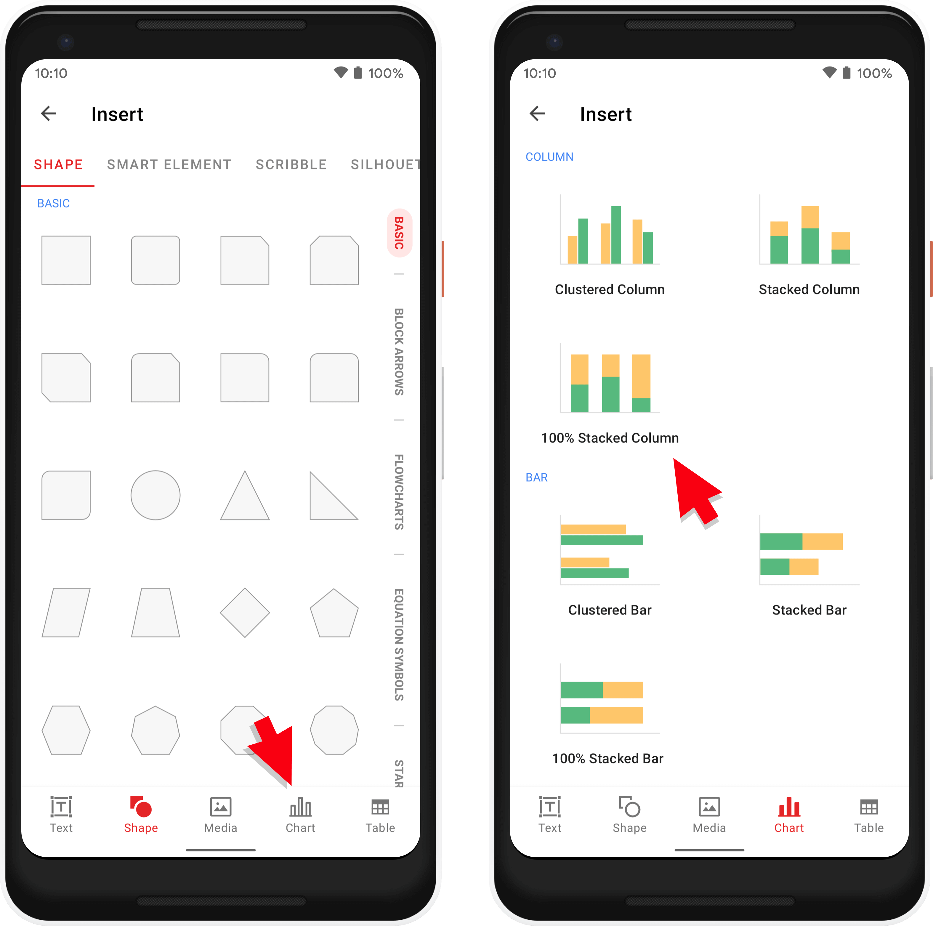 利用可能な異なるチャートカテゴリーをスクロールして探し、必要に応じたチャートを選択します。